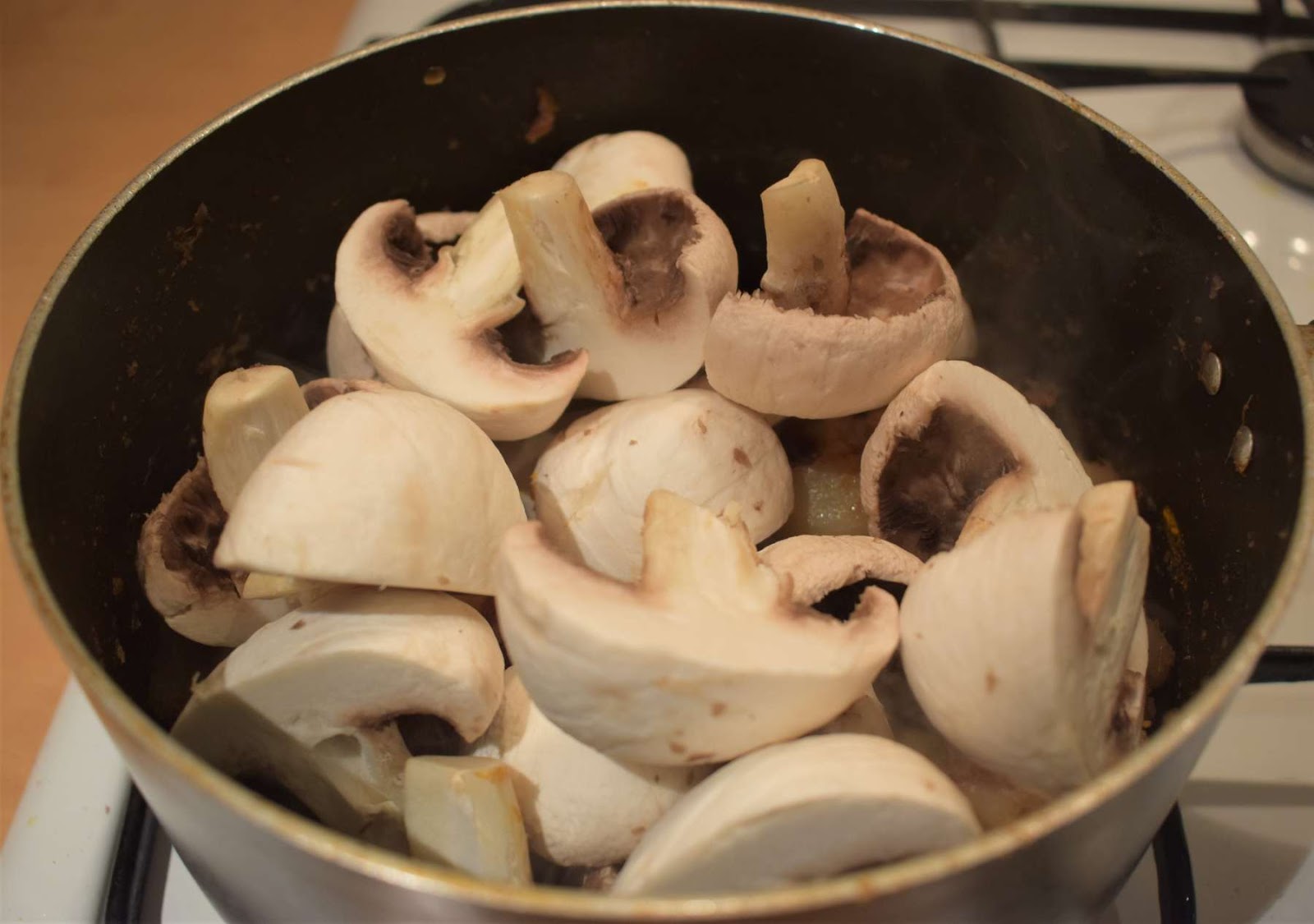 - Add Mushrooms into the pan and cook them for 3-4 minutes in low flame.