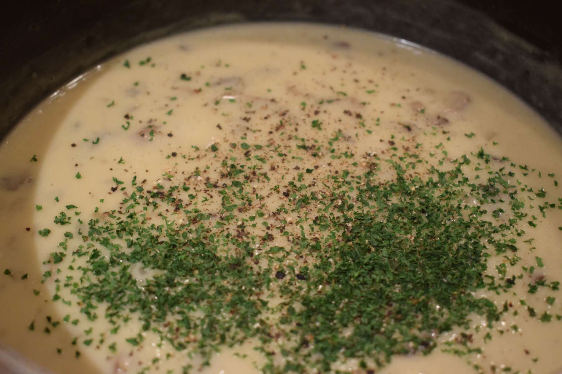 - Sprinkle some parsley, crushed black pepper and give a nice stir.