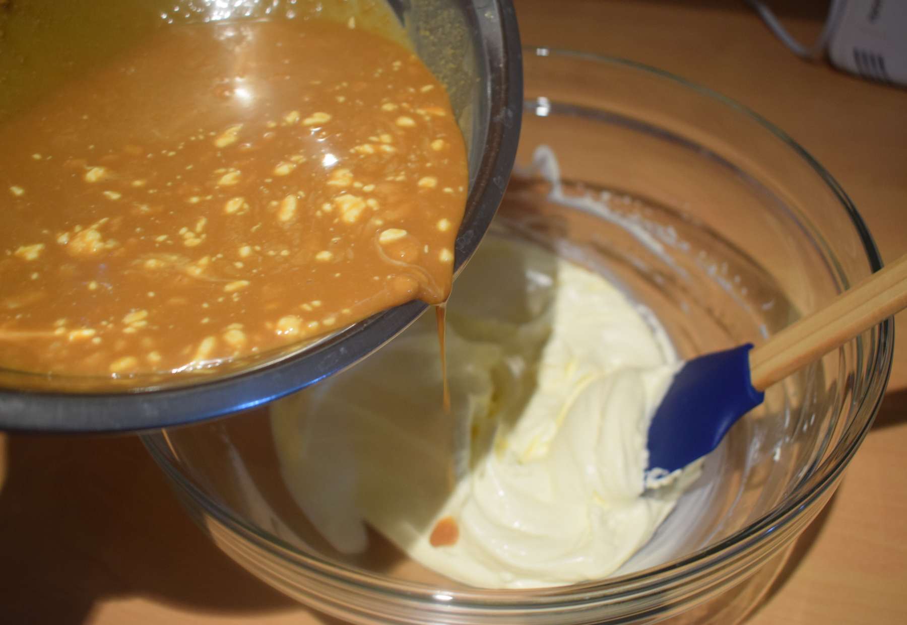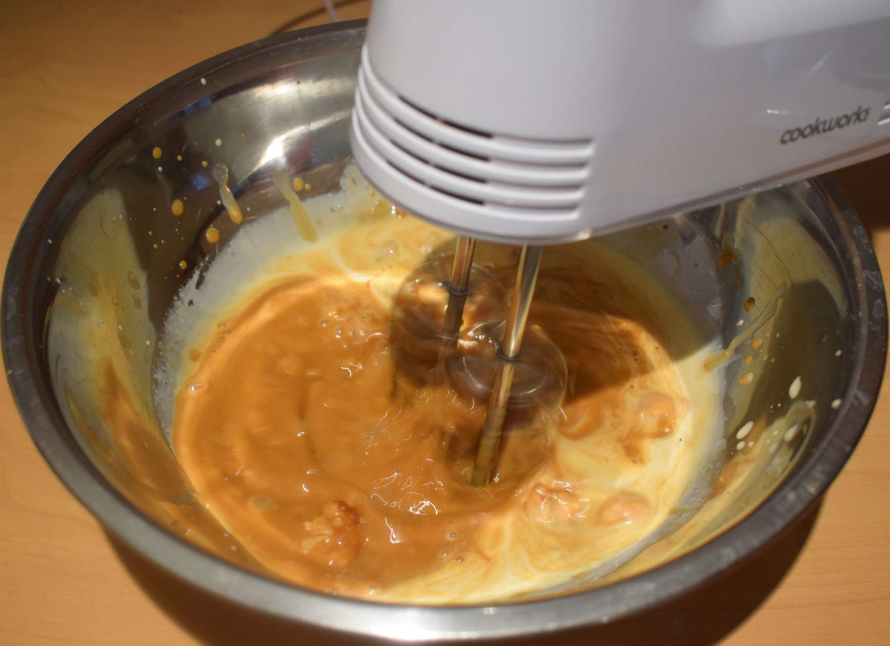 - Add the Sandesh mixture (Step 11) into the cream and whisk it for 2-5 seconds to mix all the ingredients.