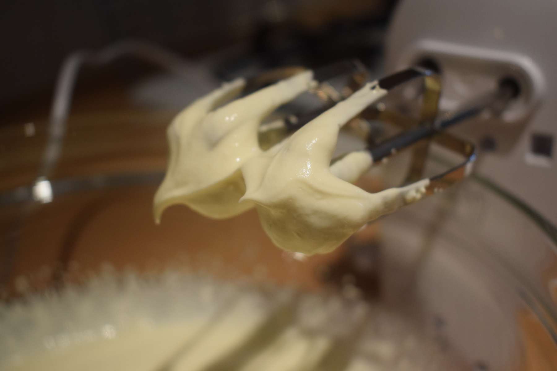 - Beat the cream until the mixture becomes heavy and stiff peaks start coming up. Be careful, don’t over beat the cream or it will become grainy in texture.