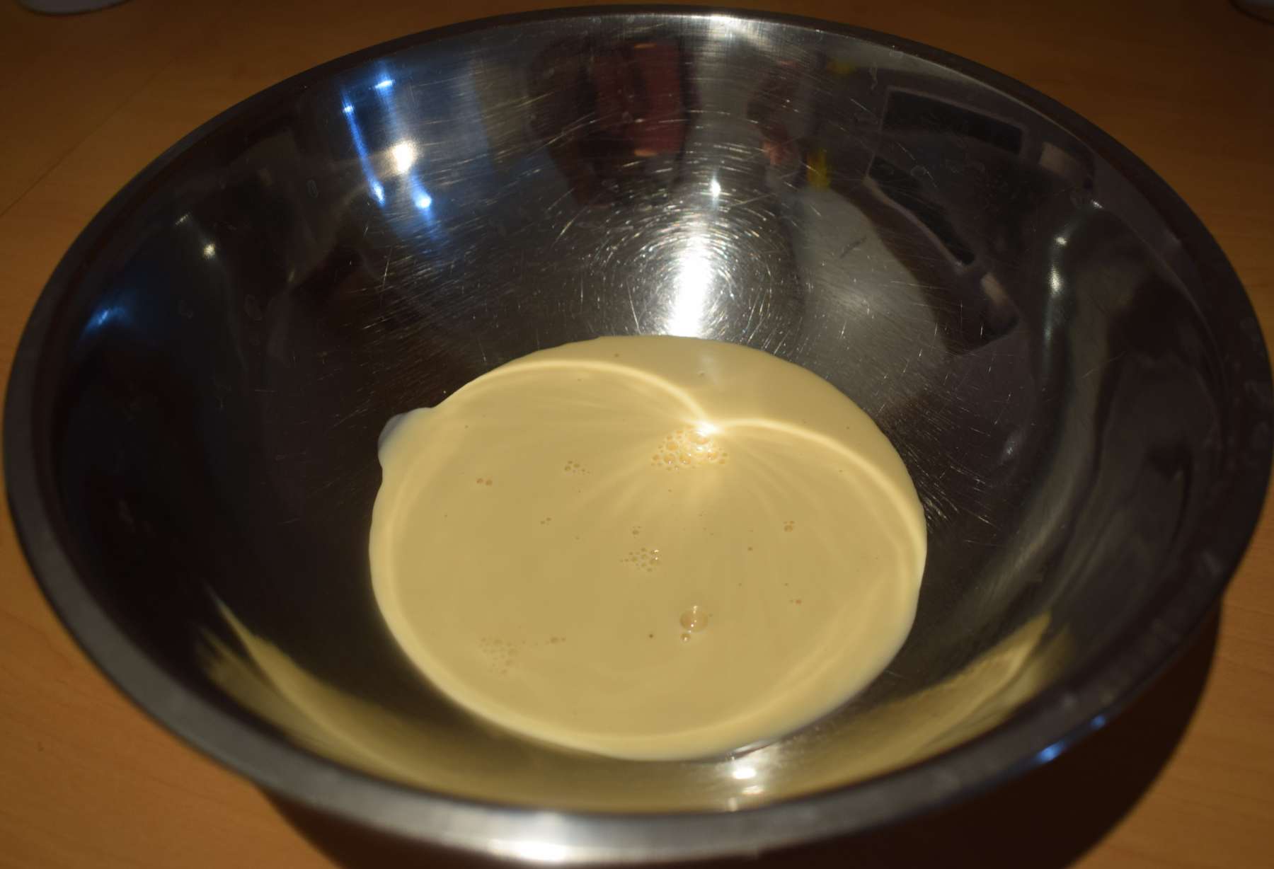 - Take a mixing bowl and add a can of 170 grams evaporated milk into it.