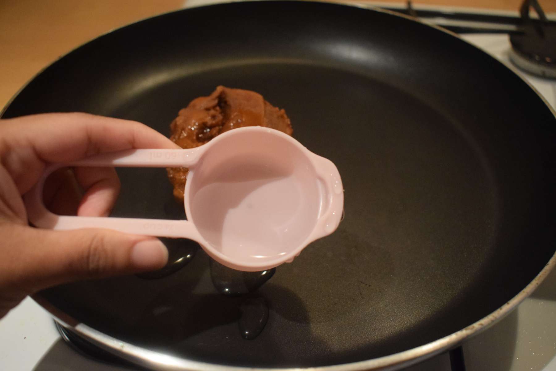 - Add 3 tablespoons of water into the pan and melt the nolen gur at lowest flame.
