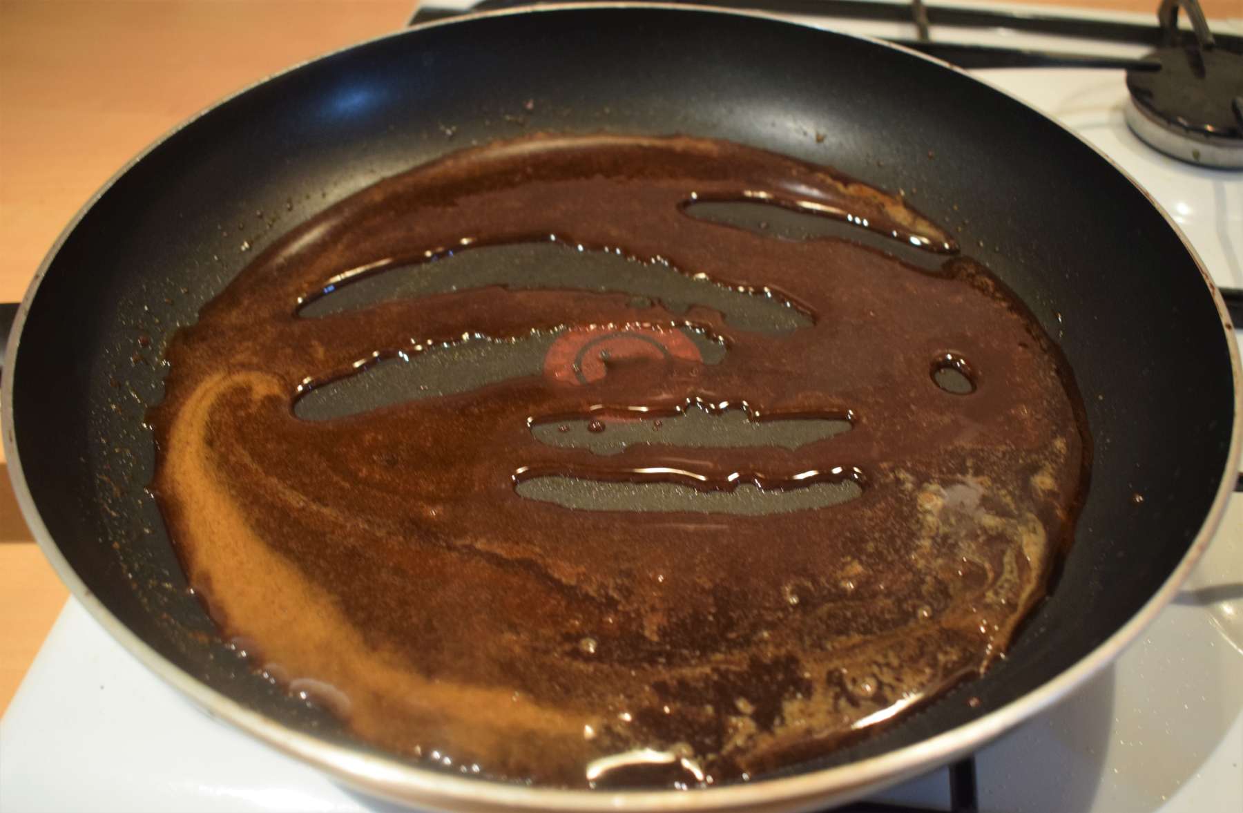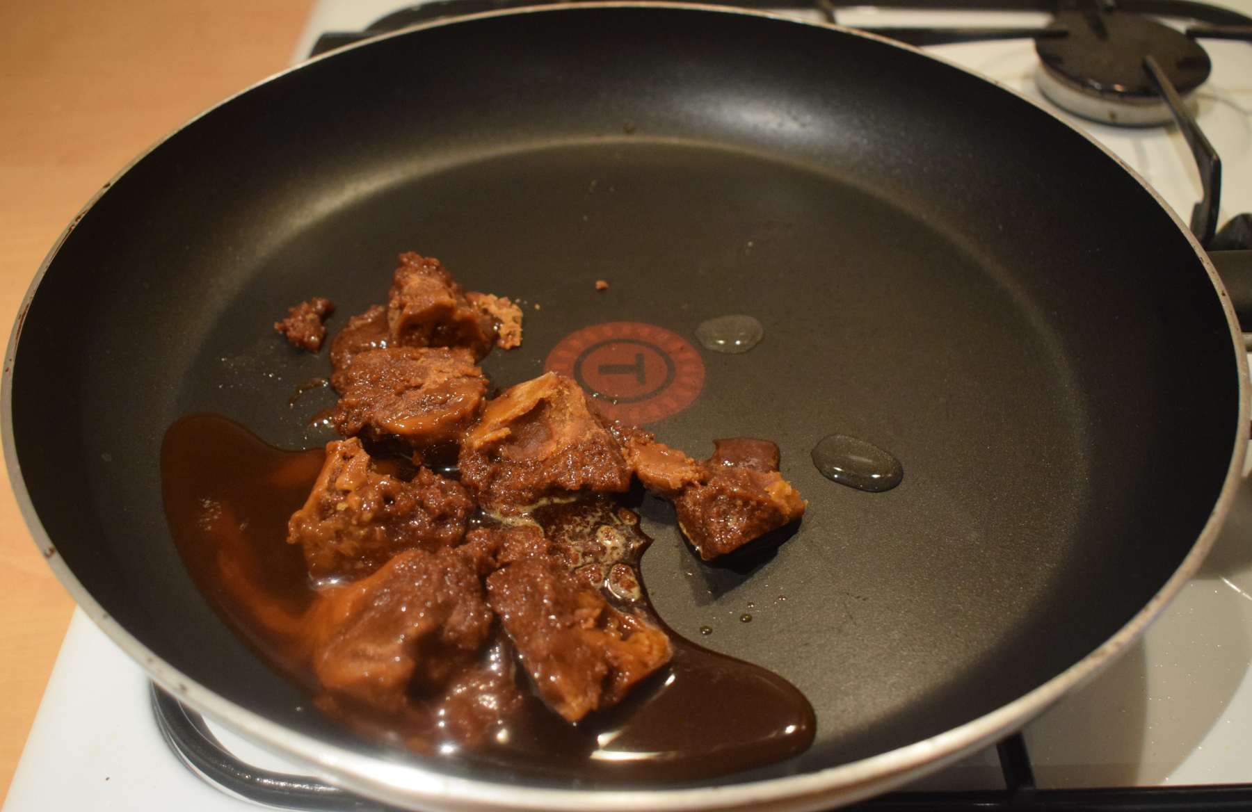 - Melt the nolen gur completely over lowest heat. Be patient at this step. For me, it took 5-6 minutes for the whole procedure.
