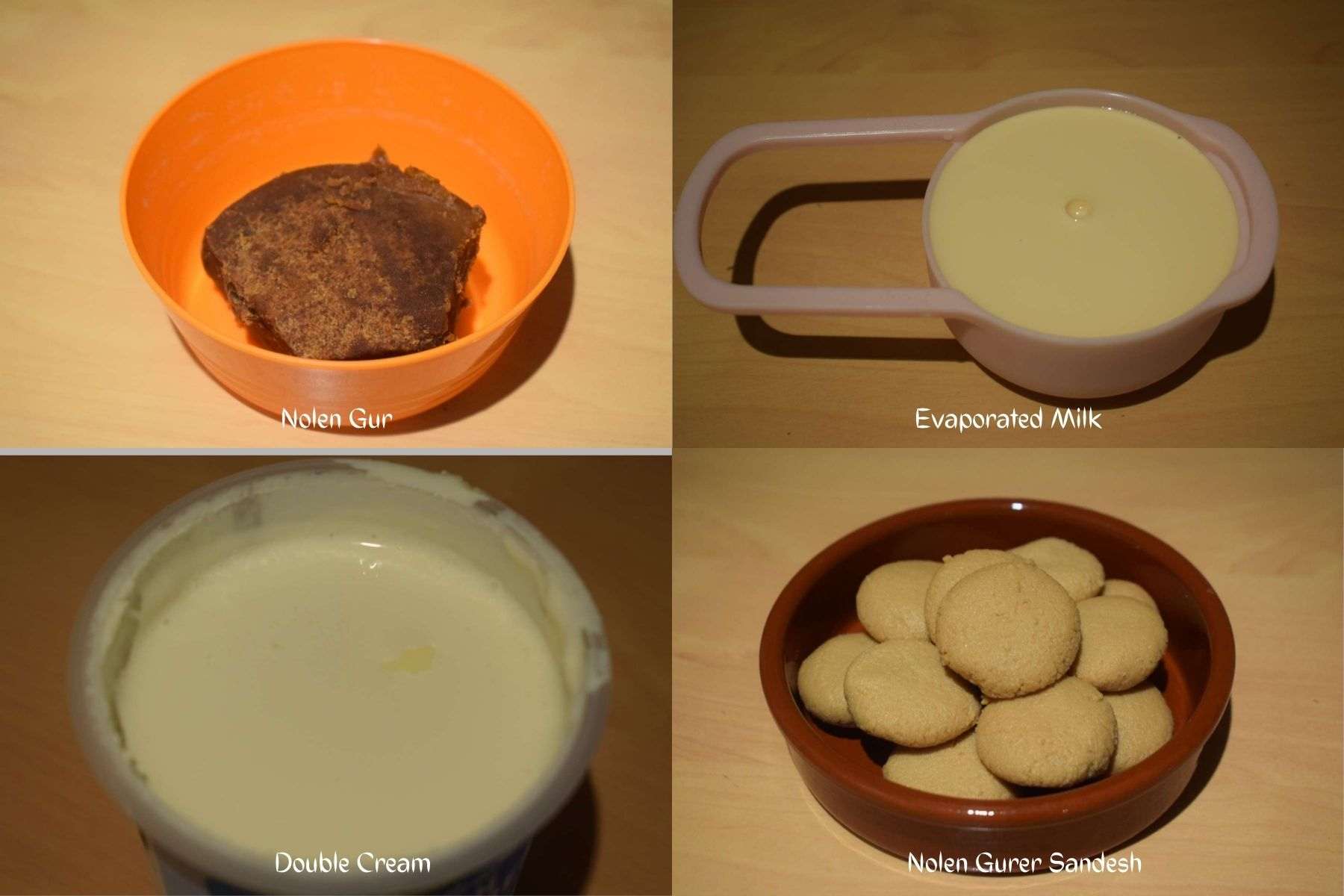 - Jhola gur or melted Nolen gur, for drizzling (1 teaspoon for each scoop)