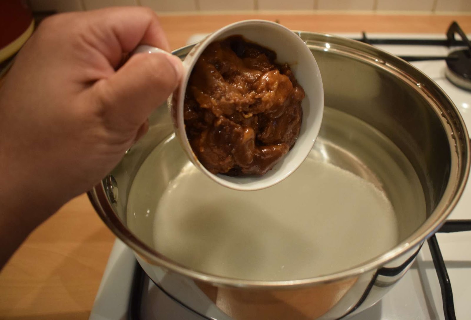 - Add the Date Palm jaggery into the pan and stir it until the jaggery gets melt.