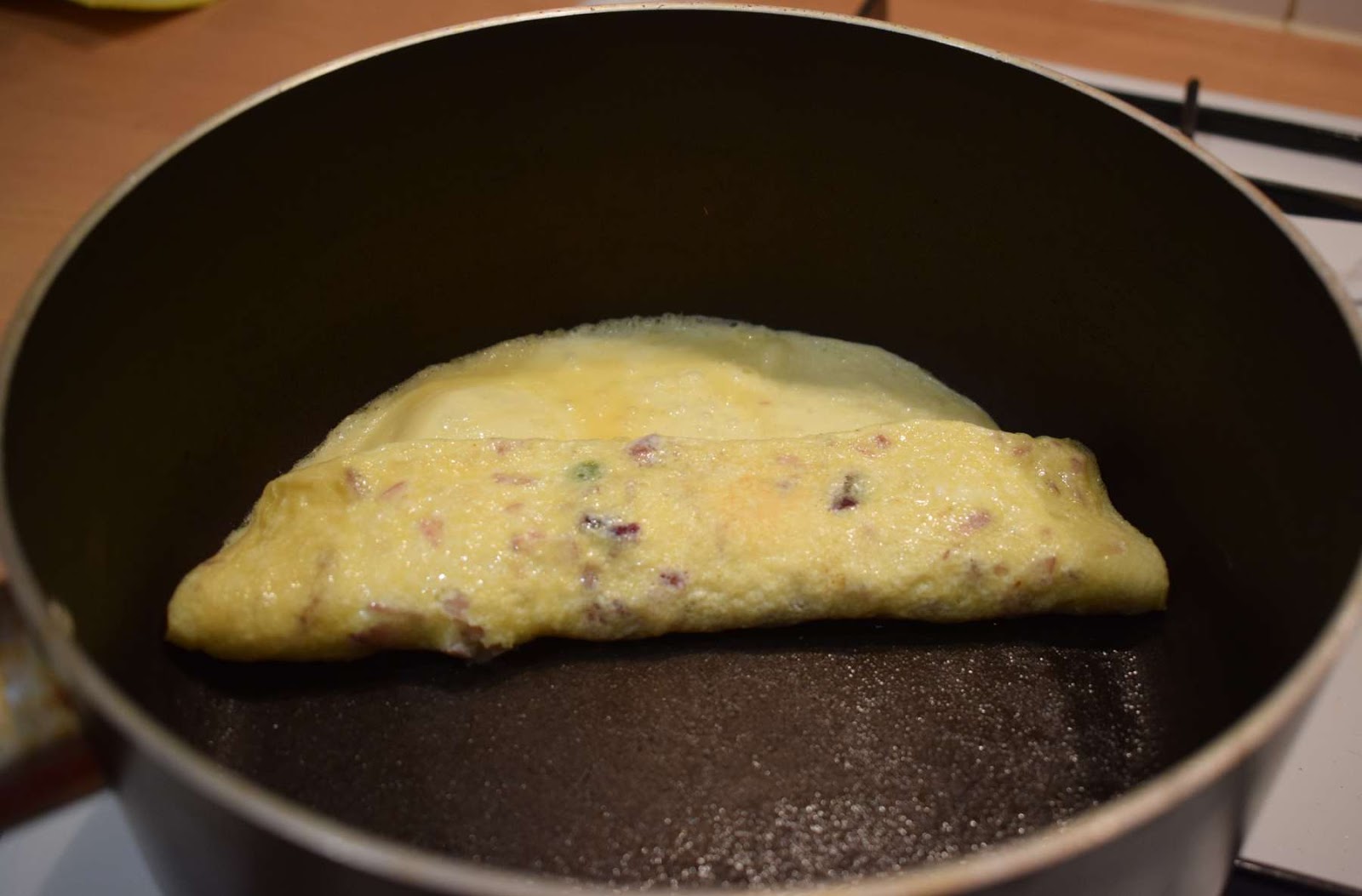 - Put the end edge at the bottom of the pan and cook for few seconds to seal the Omelette nicely.