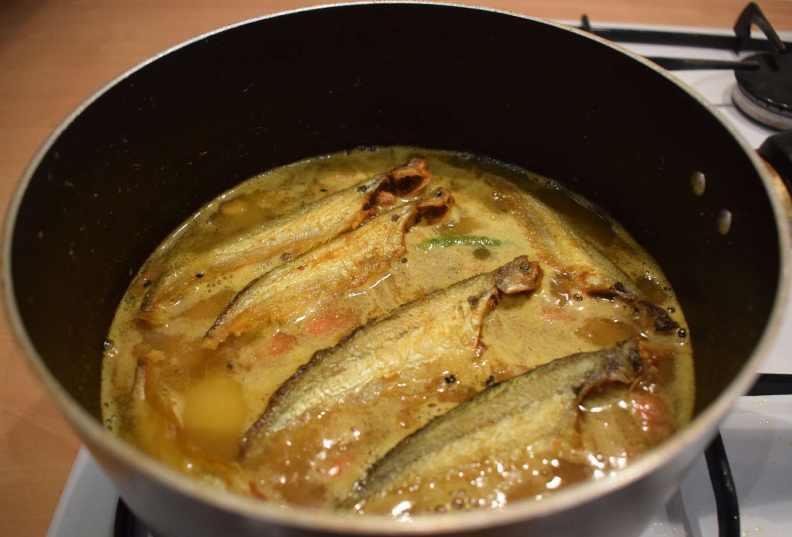 - Cover the pan and cook the fishes for 2-3 minutes.