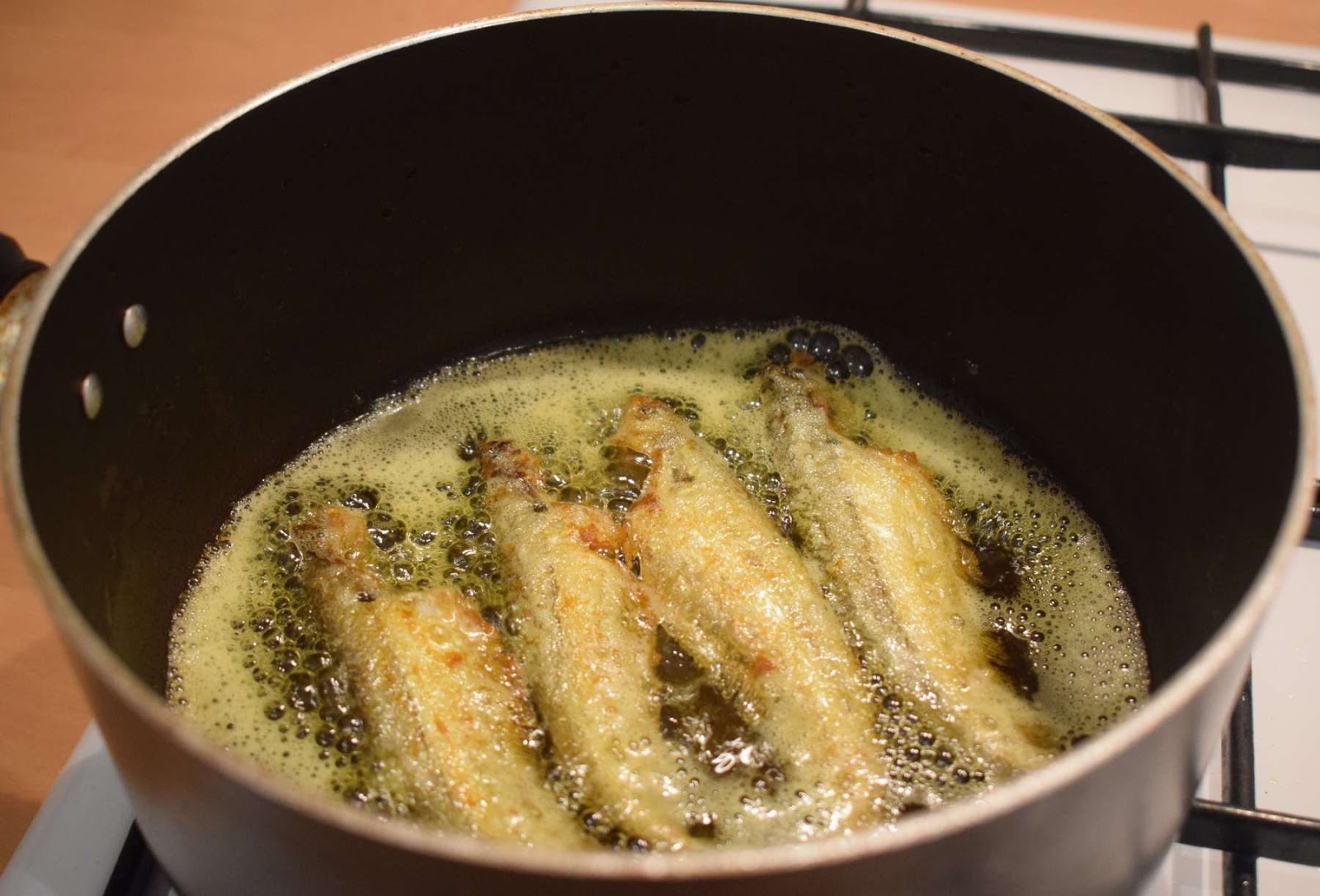 - Once the bottom side is done, turn the fishes very gently and fry another side.