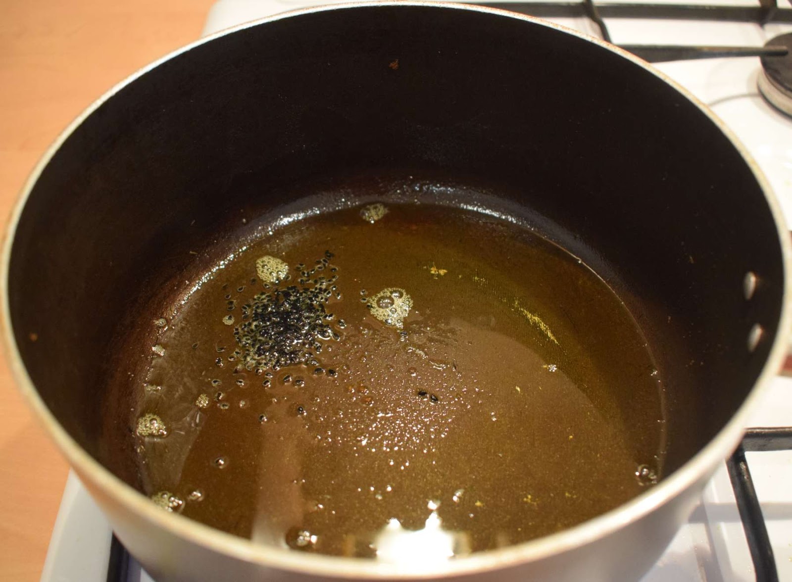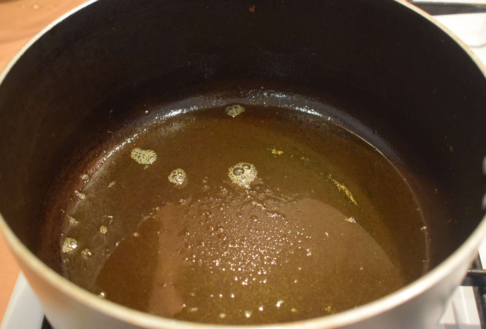 - Add Mustard oil into the pan and wait until the oil is hot.