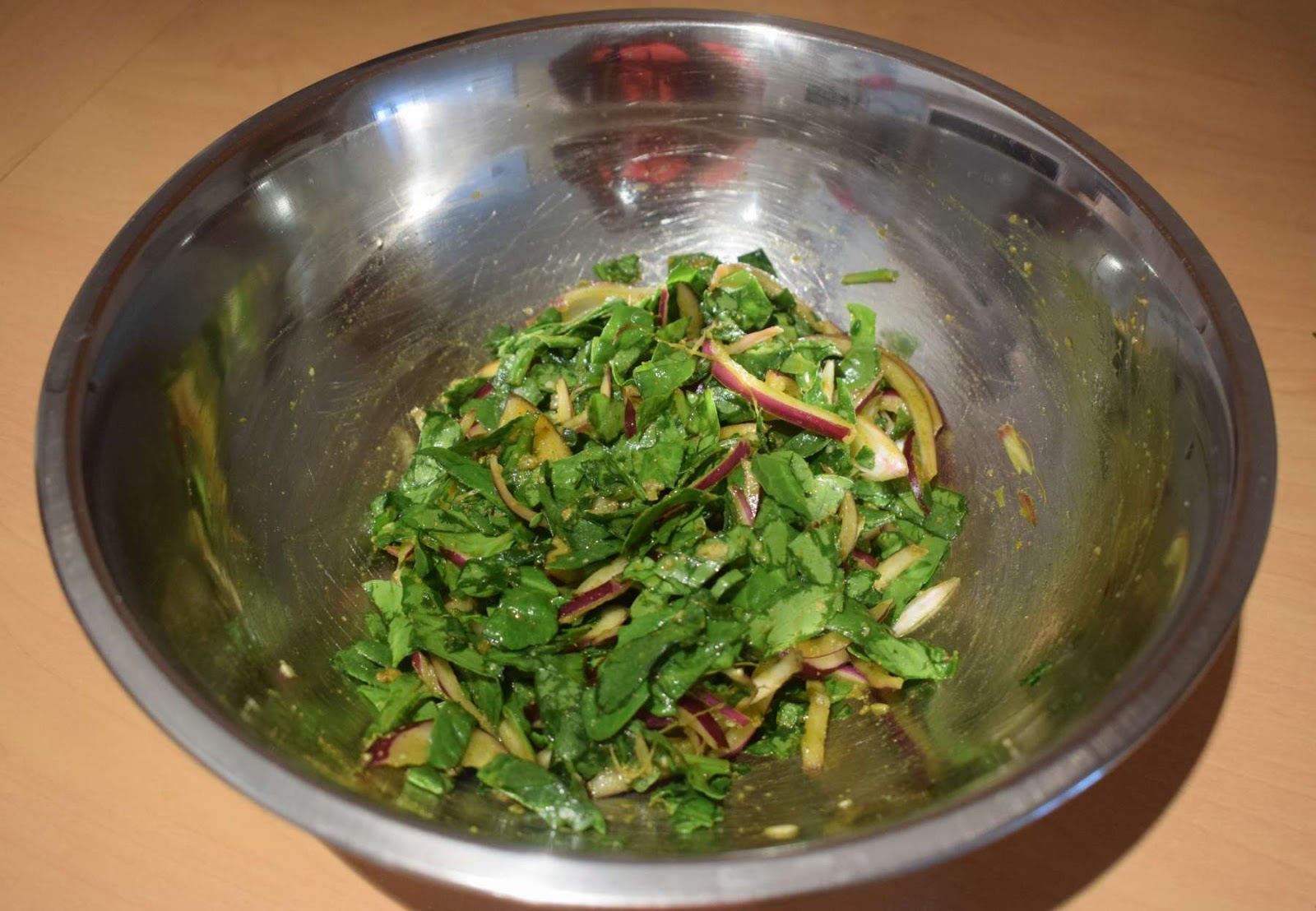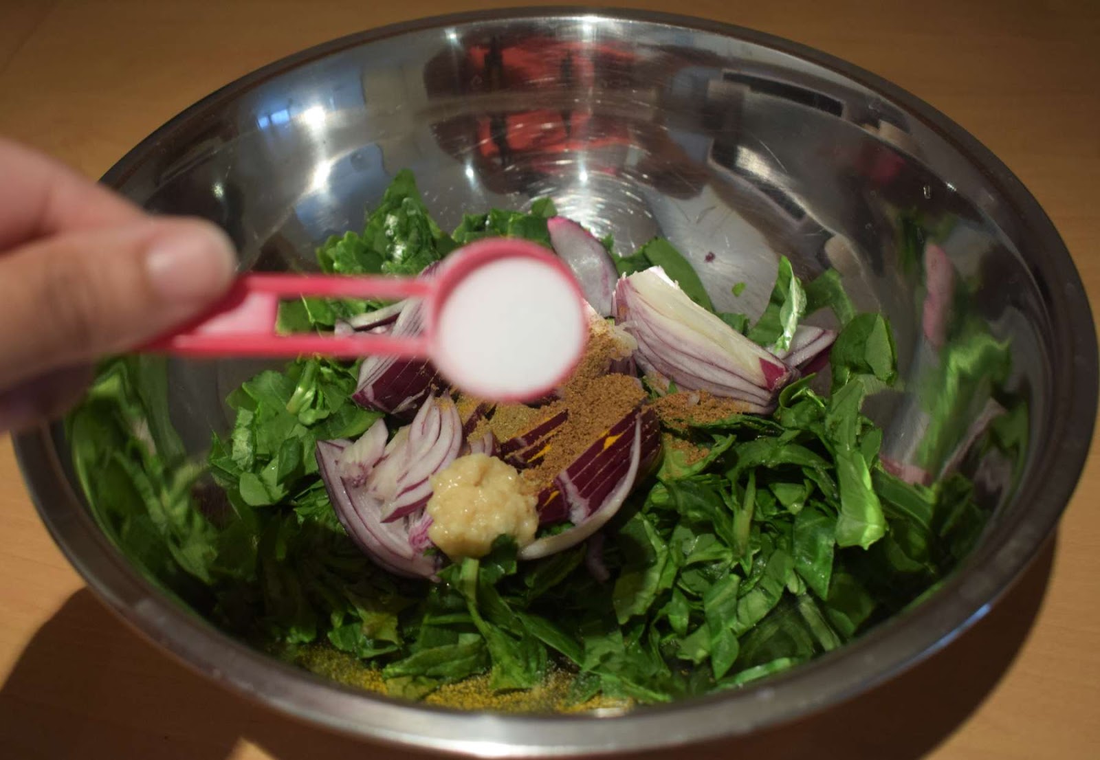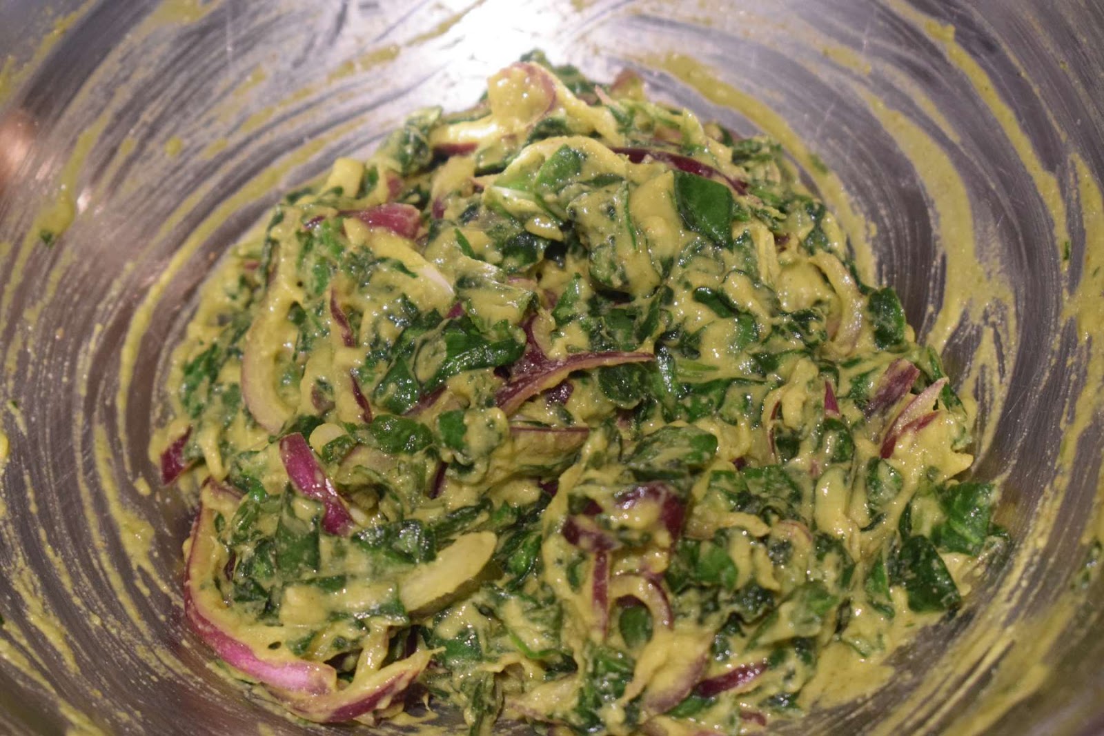 - Make the spinach leaves moisture free after washing them. It helps to make crispier pakora.
