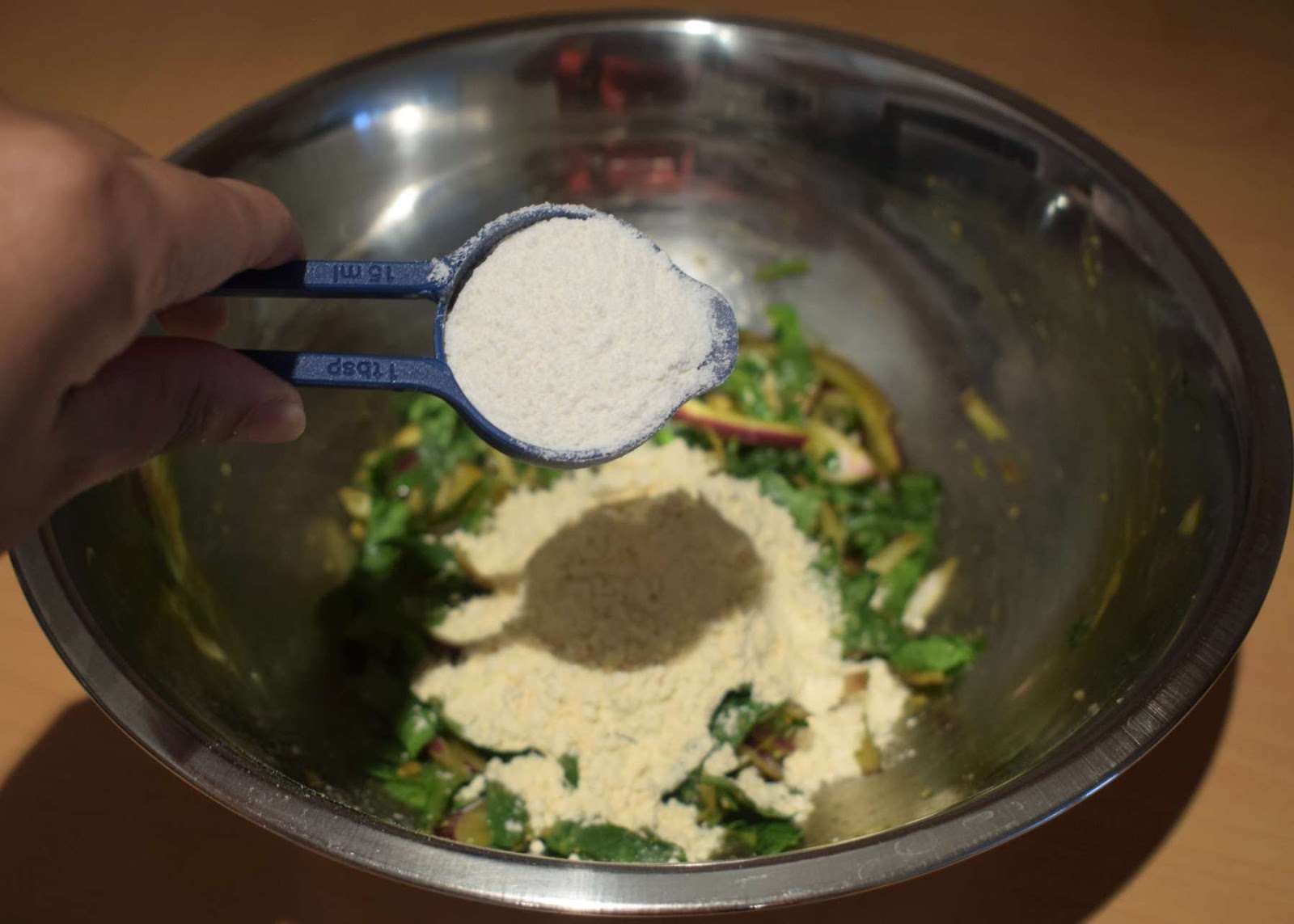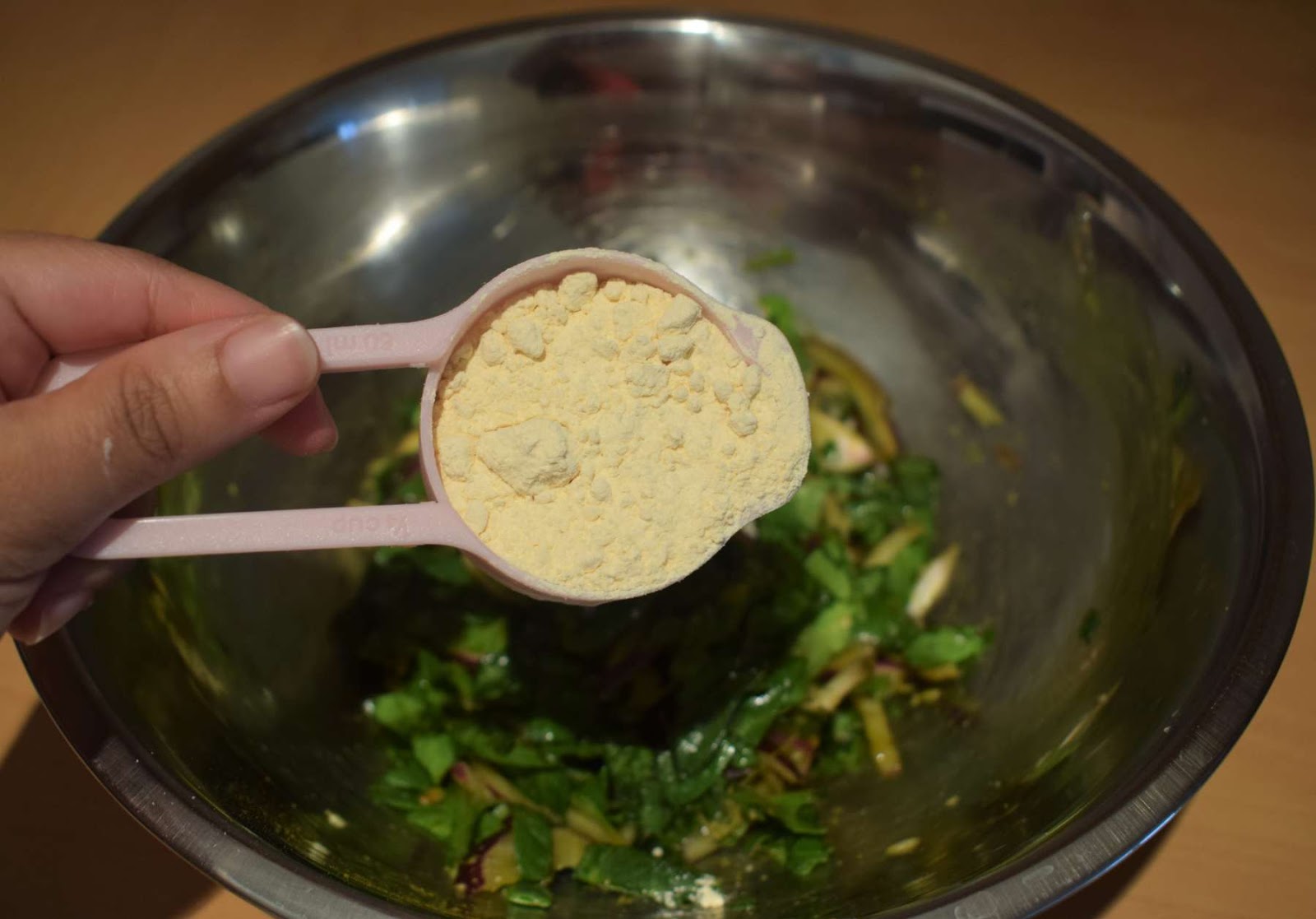 - Add measured amount of Gram flour and Rice flour into the mixing bowl.
