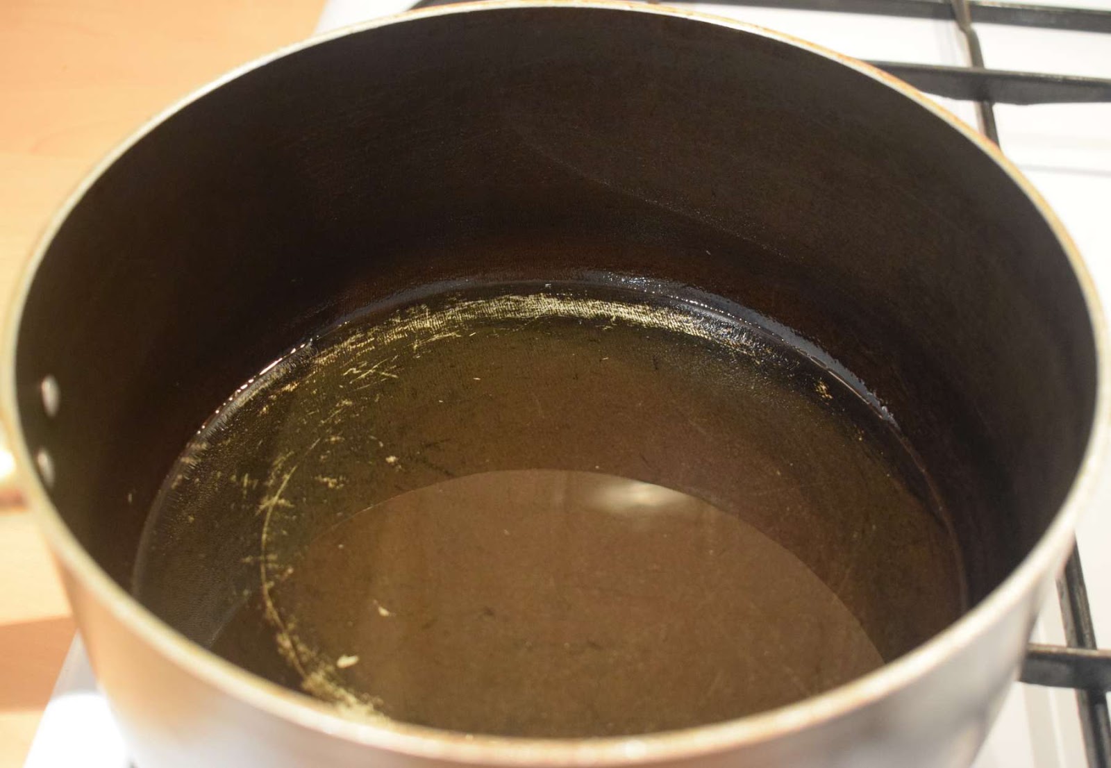 - Once the oil is hot, put the flame in medium and drop small portions of the pakoda batter into the pan slowly with help of your hand or with a spoon. Keep space in between two pakodas. Don’t over crowd the pan.