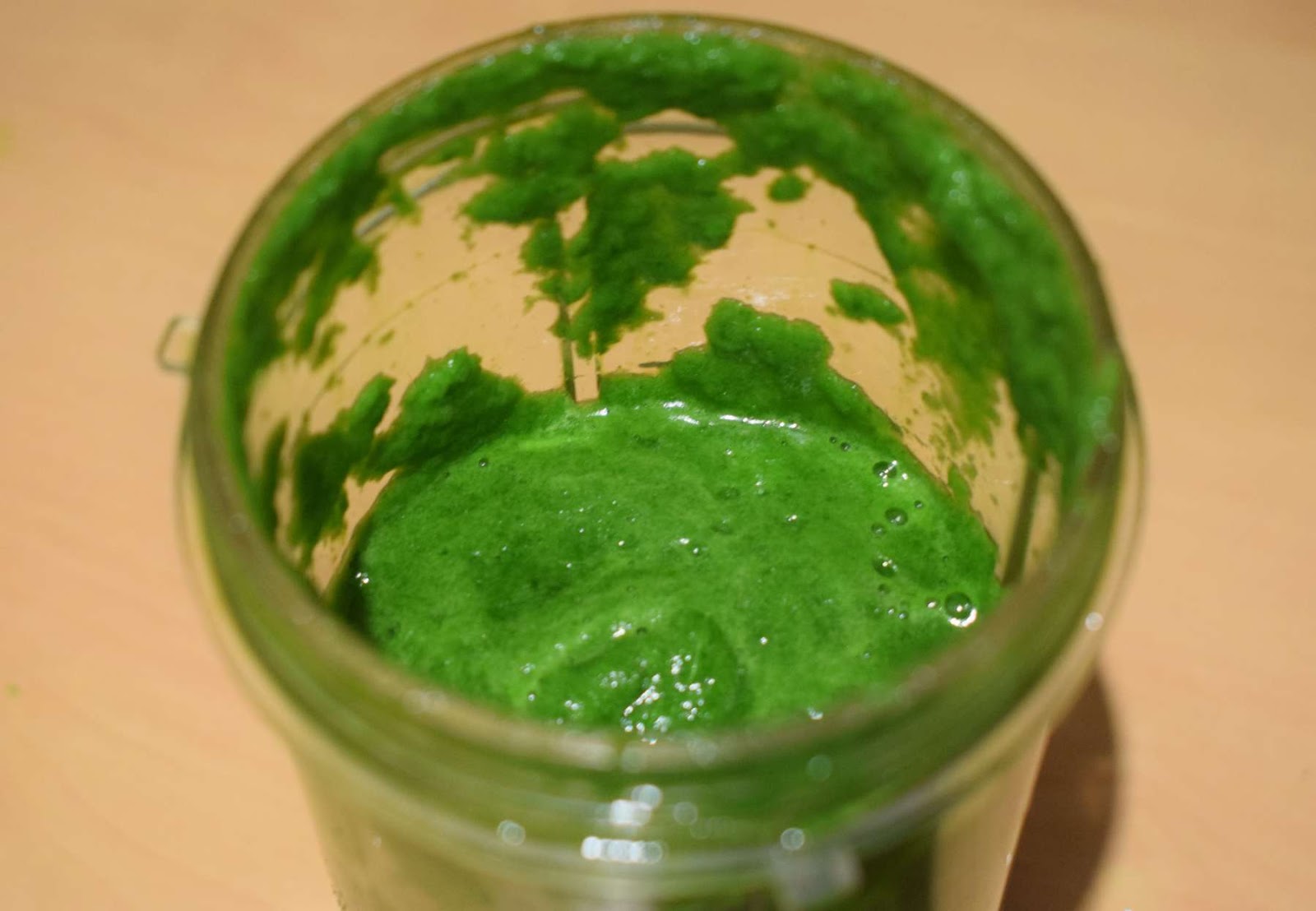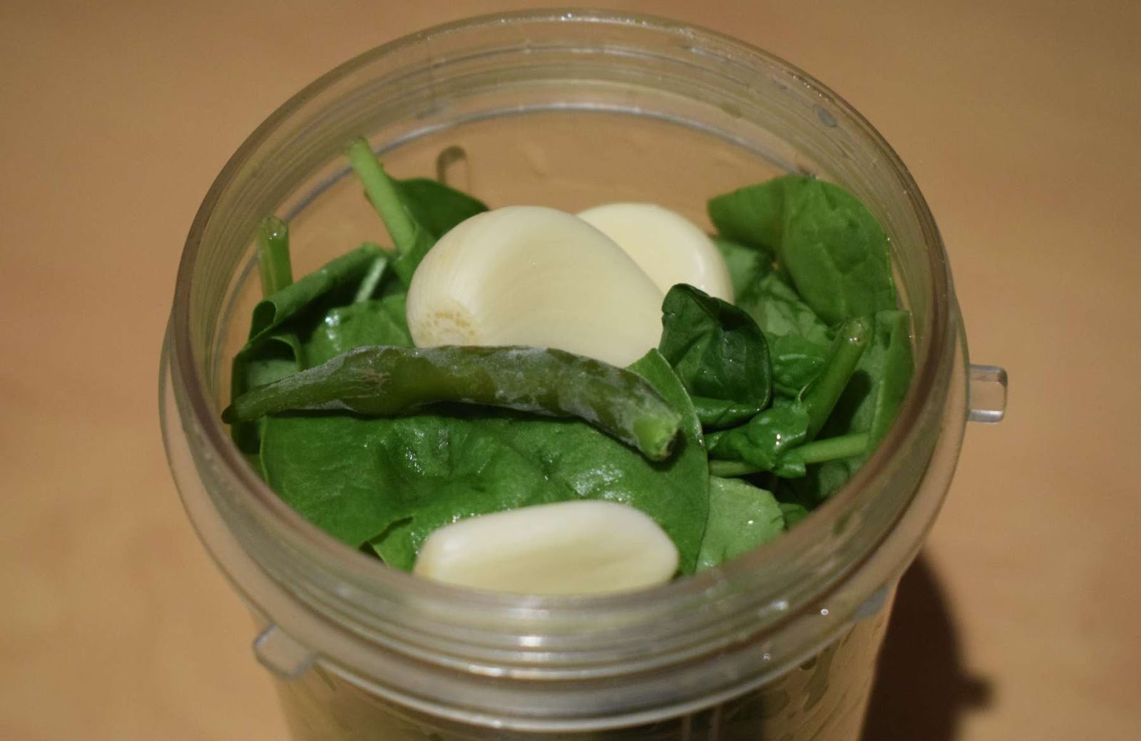 - Put the spinach leaves into a jar of a blender or mixer grinder.