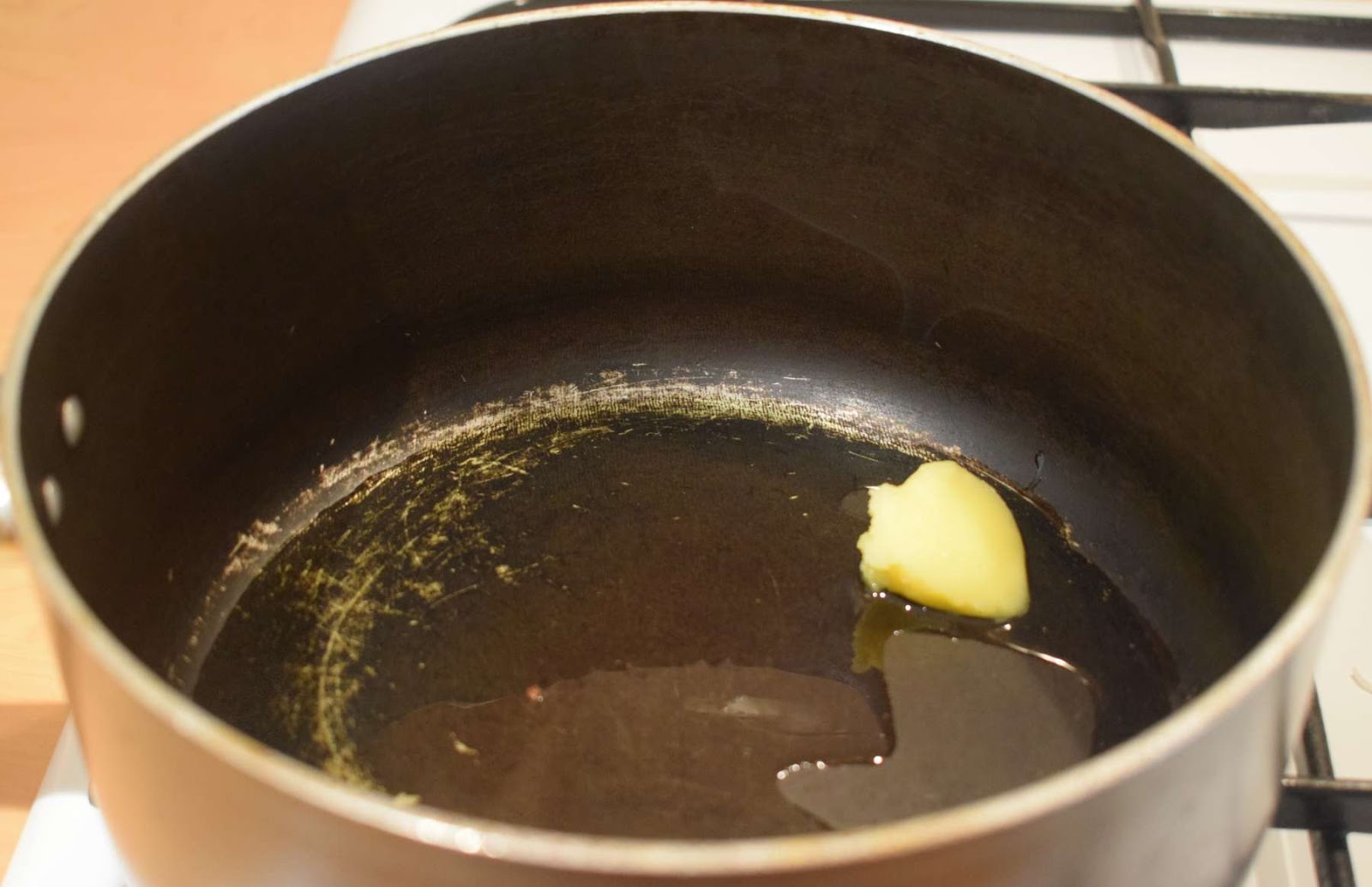- Add ghee or oil into the pan and wait until its hot.