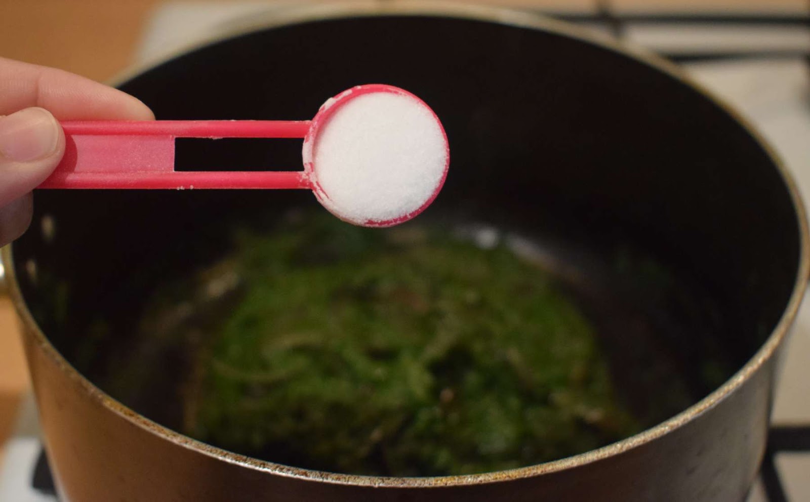 - Add salt into the pan and give a nice mix.