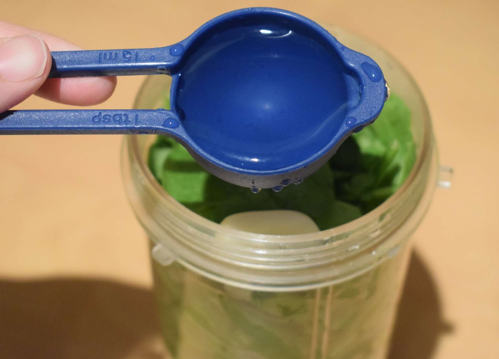 - Add green chillies, ginger, garlic, 1 tablespoon into the jar and close the lid.