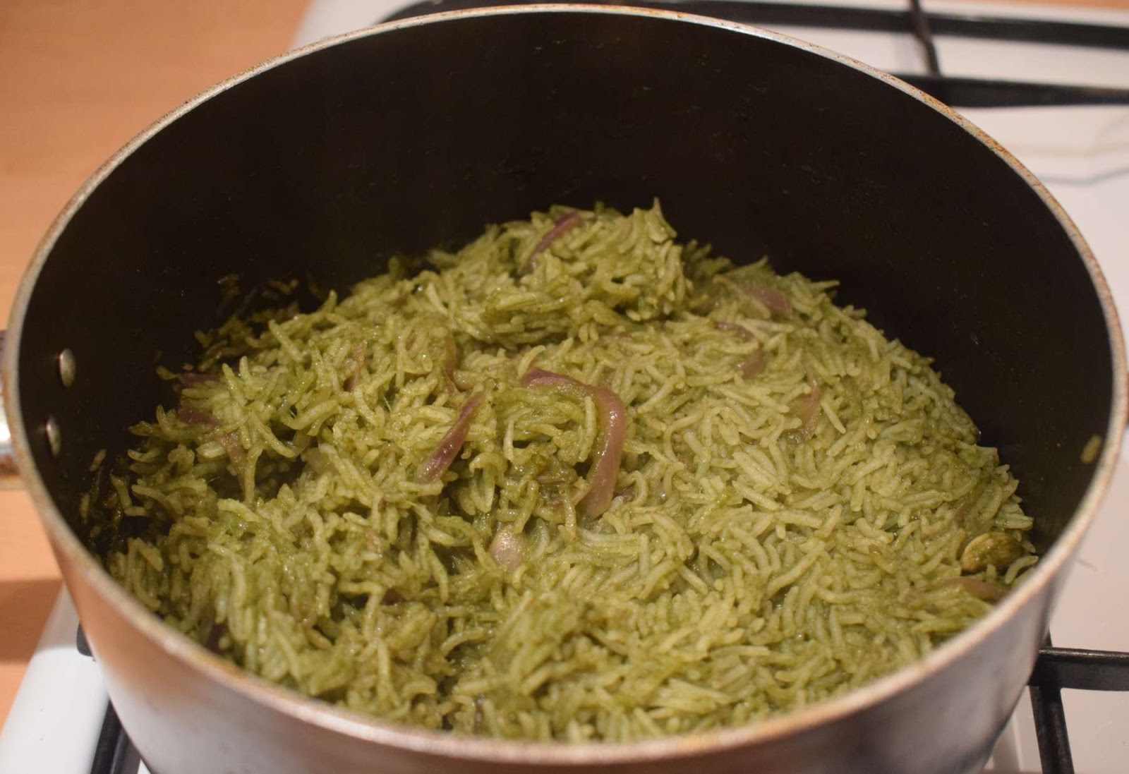 Note: Palak puree itself contains water. So, this rice requires less water than other pulao recipe.