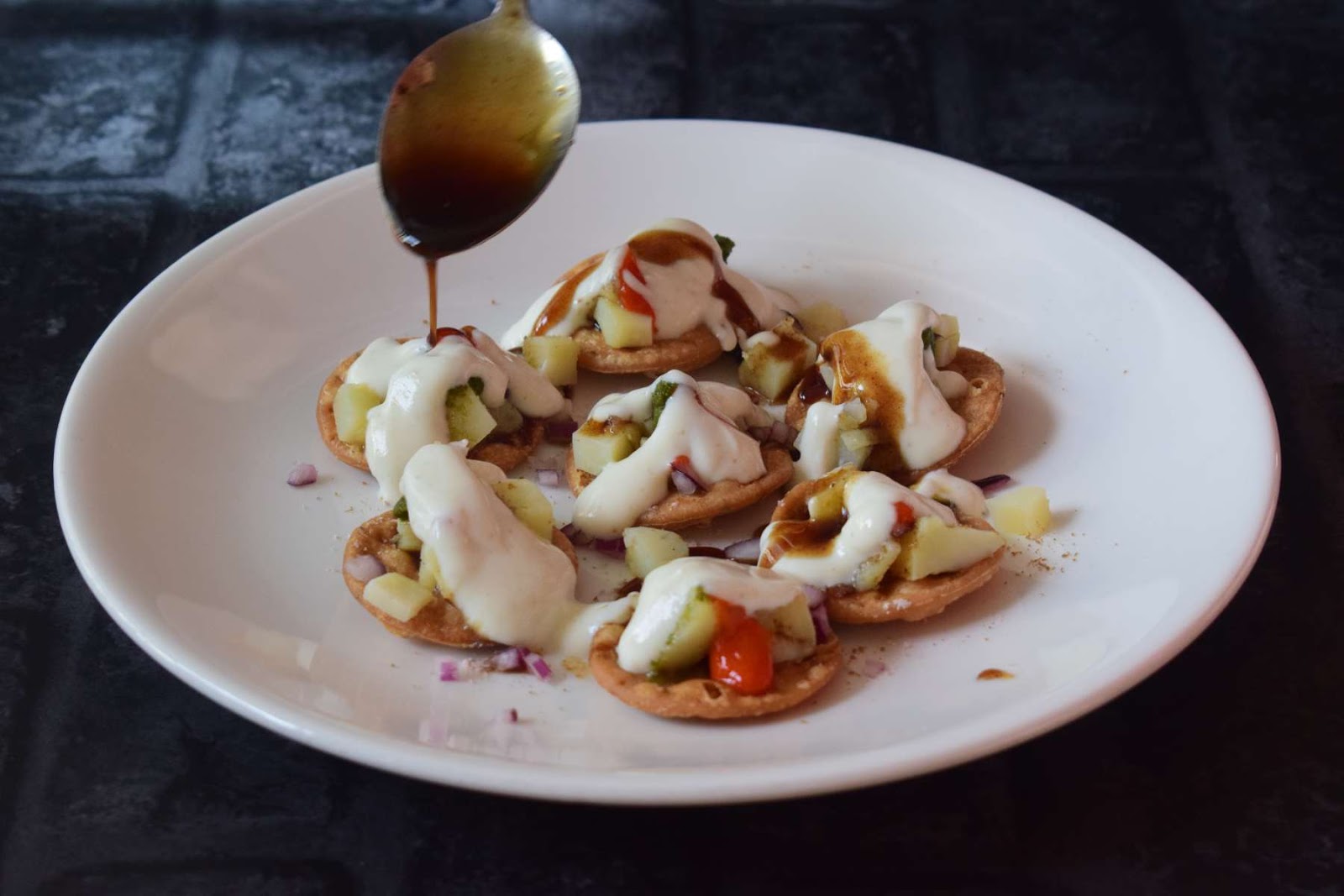 - Pour Sweet Tamarind chutney on it.