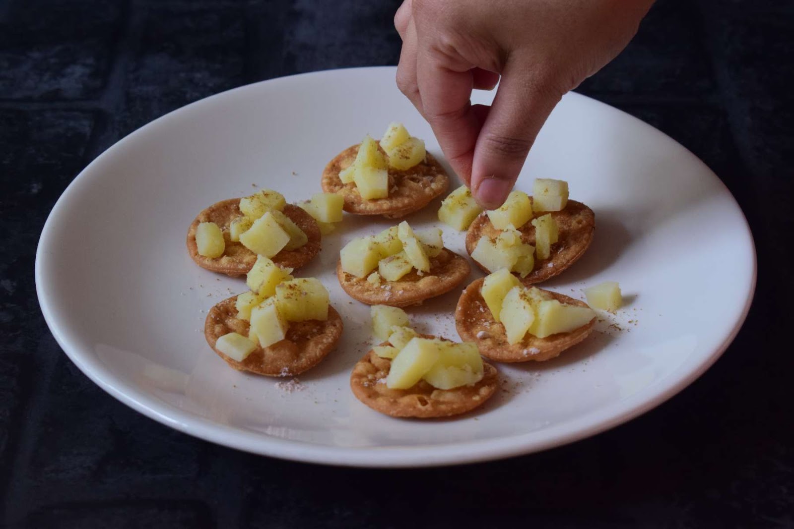 - Add boiled Potatoes on each of the Papdis.