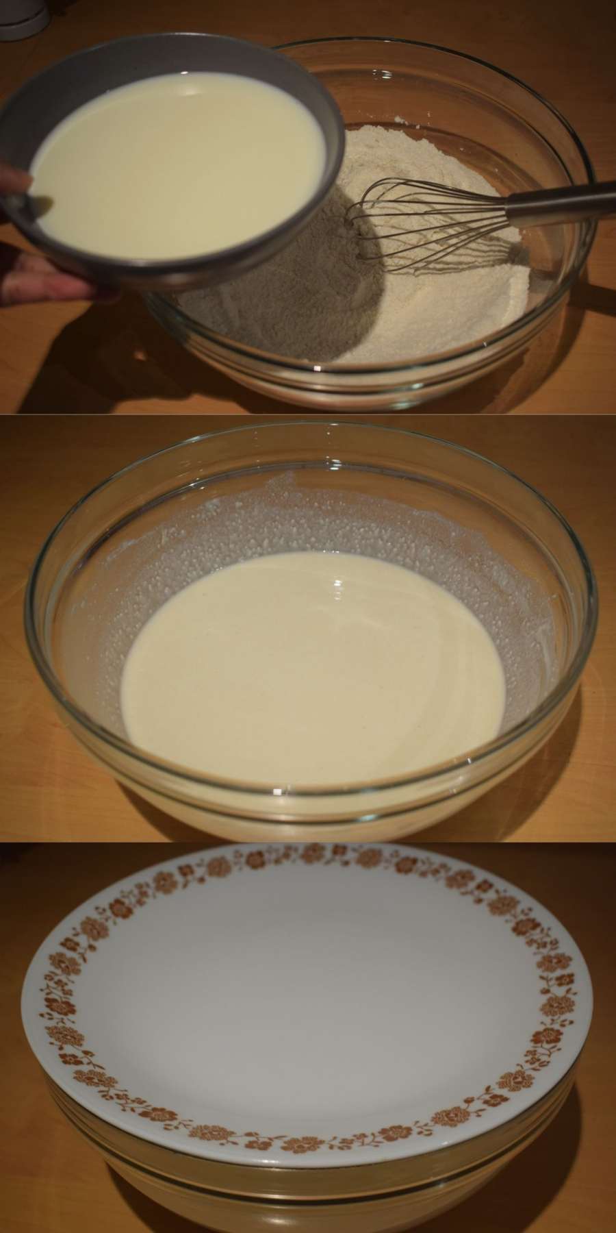 - Add 2 cups milk (at room temperature) into the bowl and make a smooth lumps-free thin batter. Cover the bowl and allow it to rest for an hour.