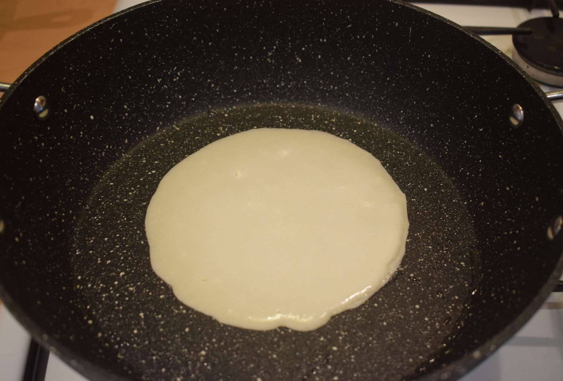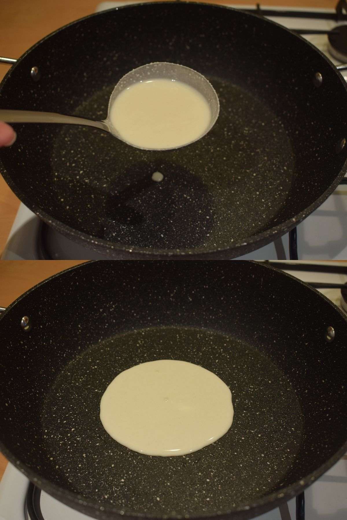 - Swirl the pan quickly to spread the batter evenly to make a thin and round crepe.