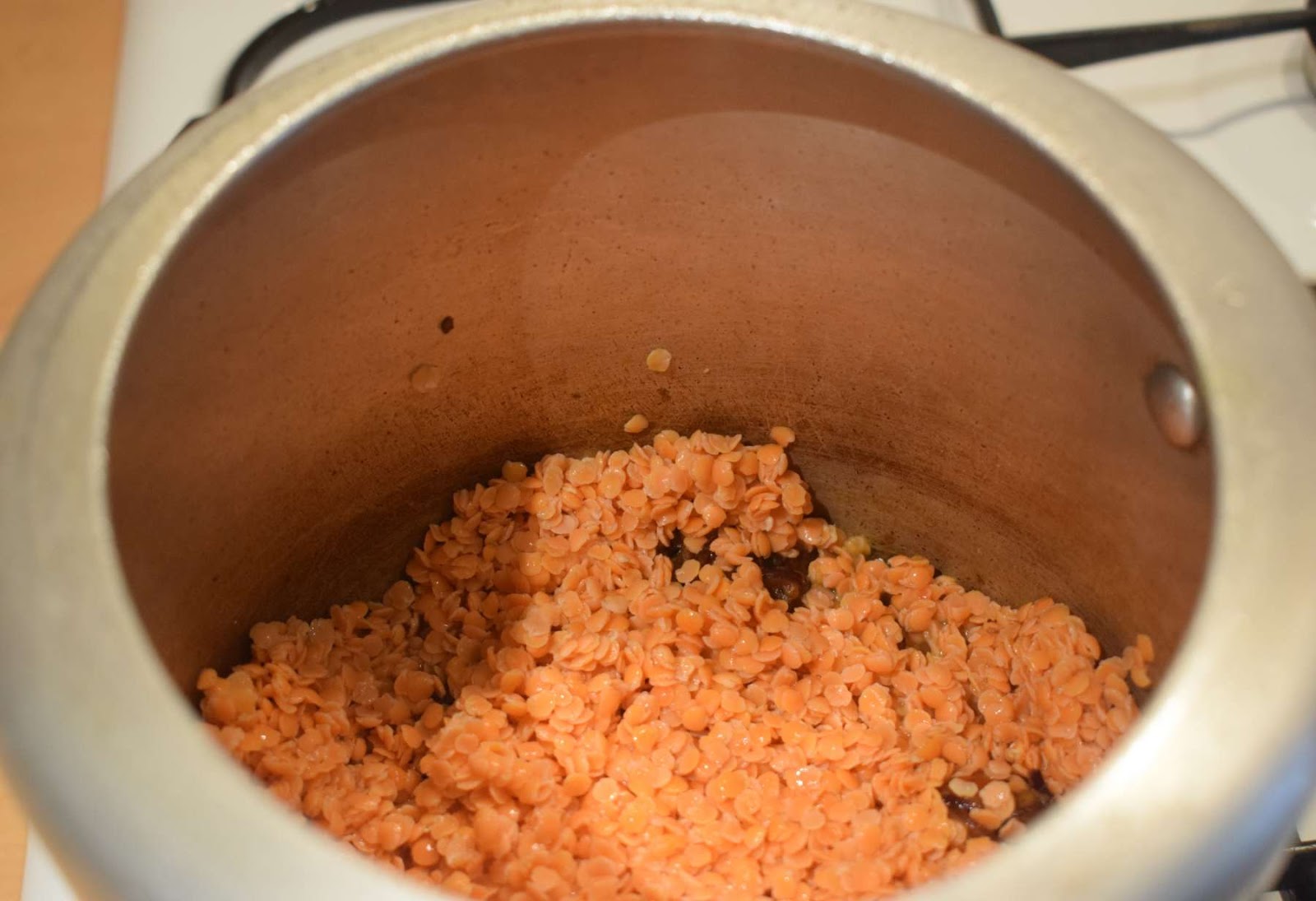 - Wash and soak Masoor dal (red Lentils) for 10 minutes and then drain the water.