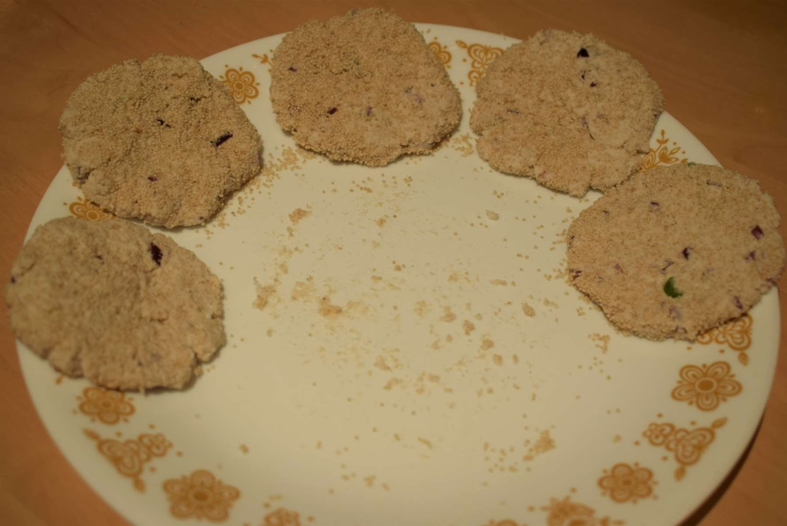 - Take small portion of the mixture in your hand and make a flat patty. Put the patty on the poppy seeds to make a coat. Repeat the same process and make the patty. I have prepared 14 patties with the mixture.