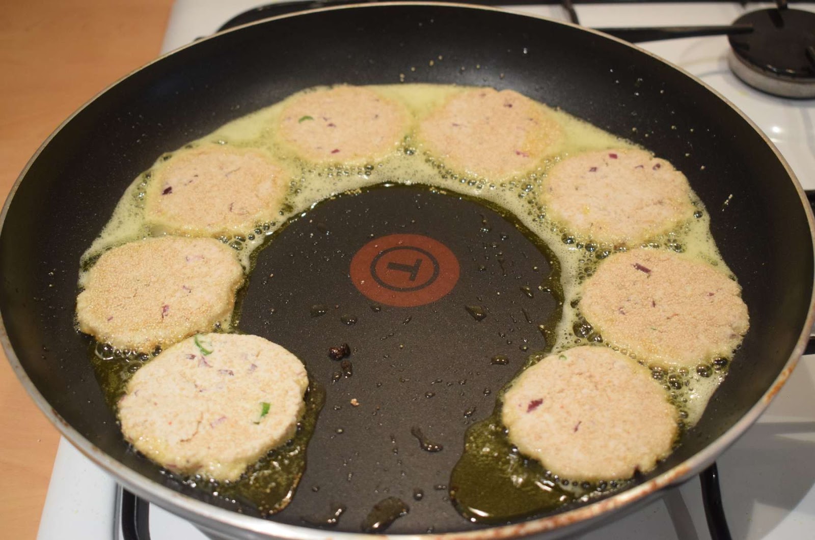 - Put the flame in medium and add the patties to fry.