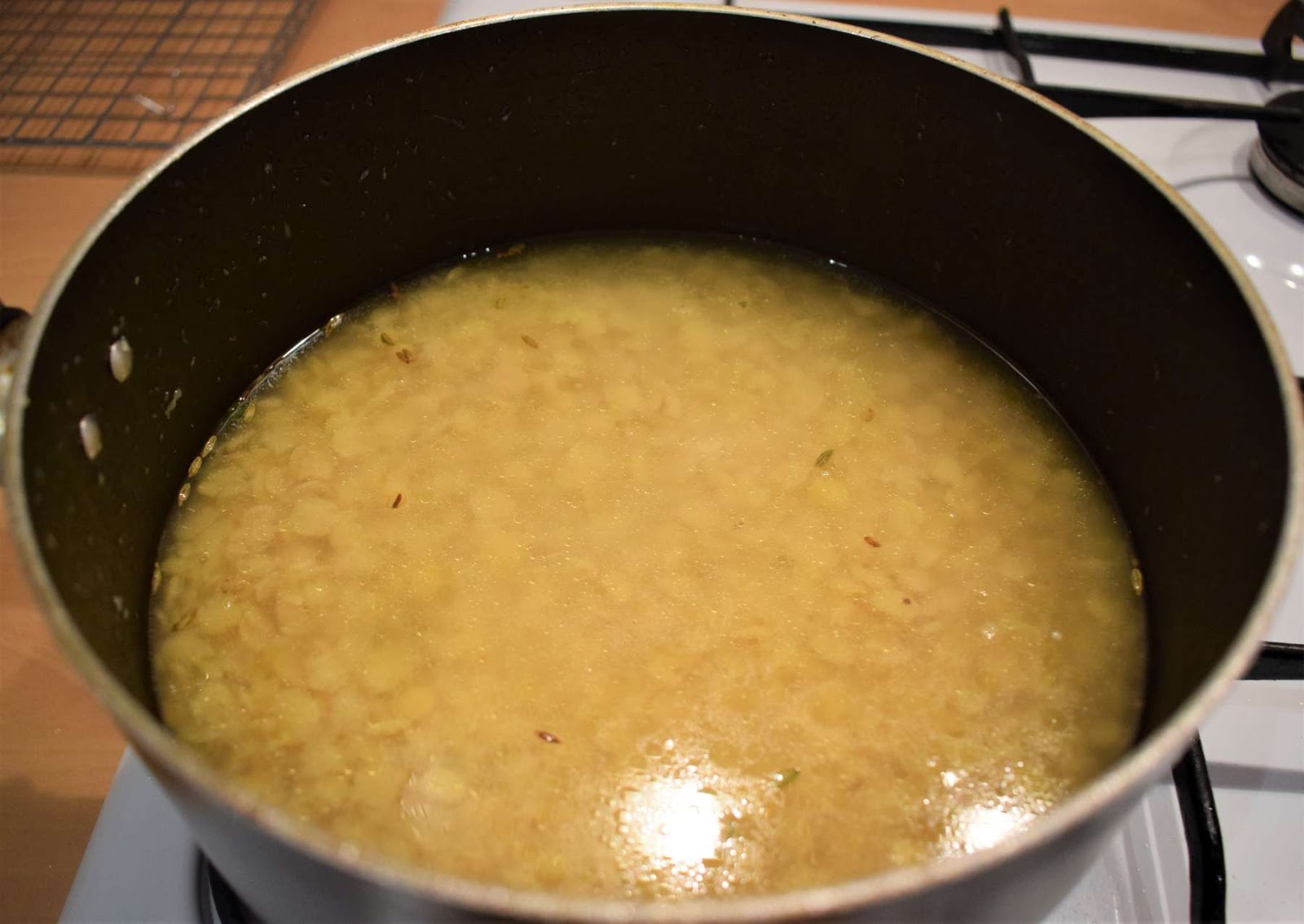 - Cook the dal in high flame until simmers.