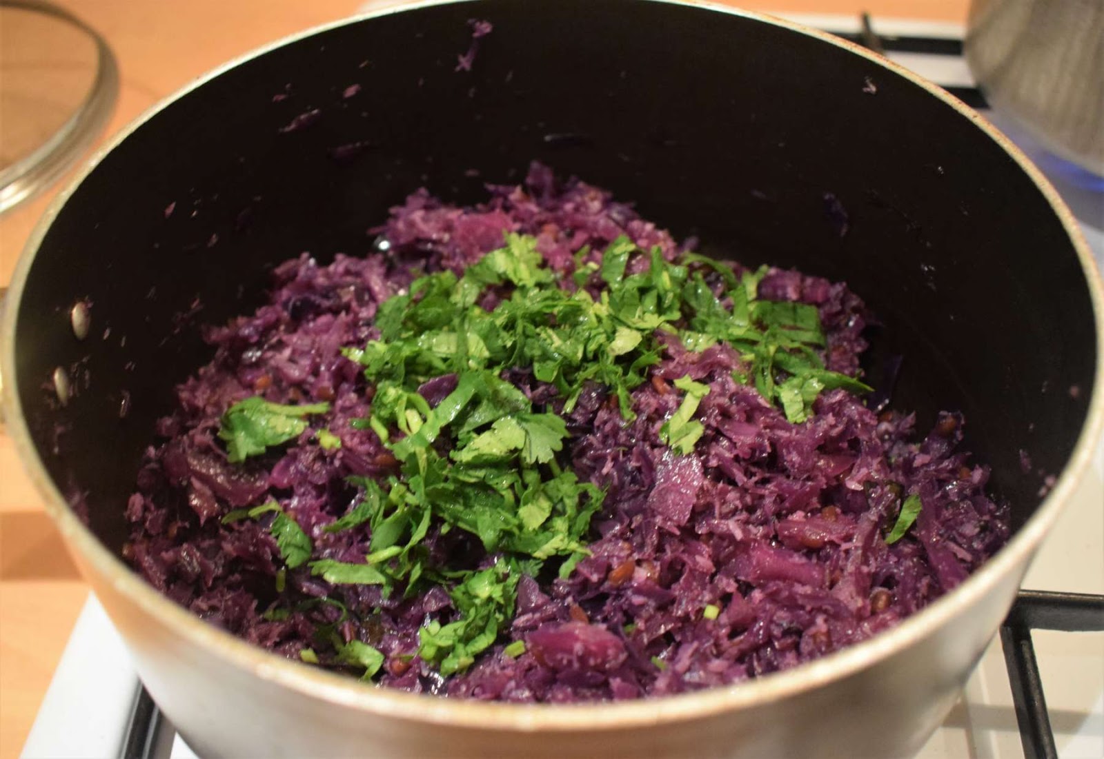 - Cook in medium flame until the red Cabbage become tender. Stir in between.