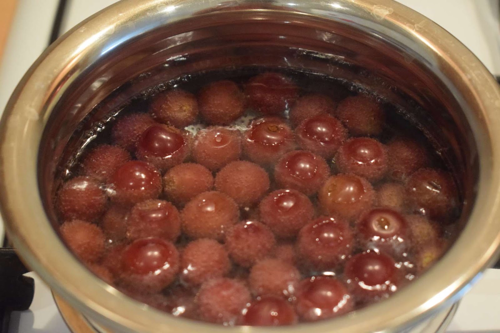 - Put the saucepan on flame and let the grapes boil.