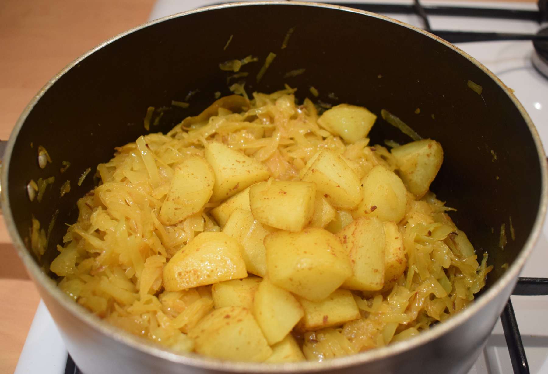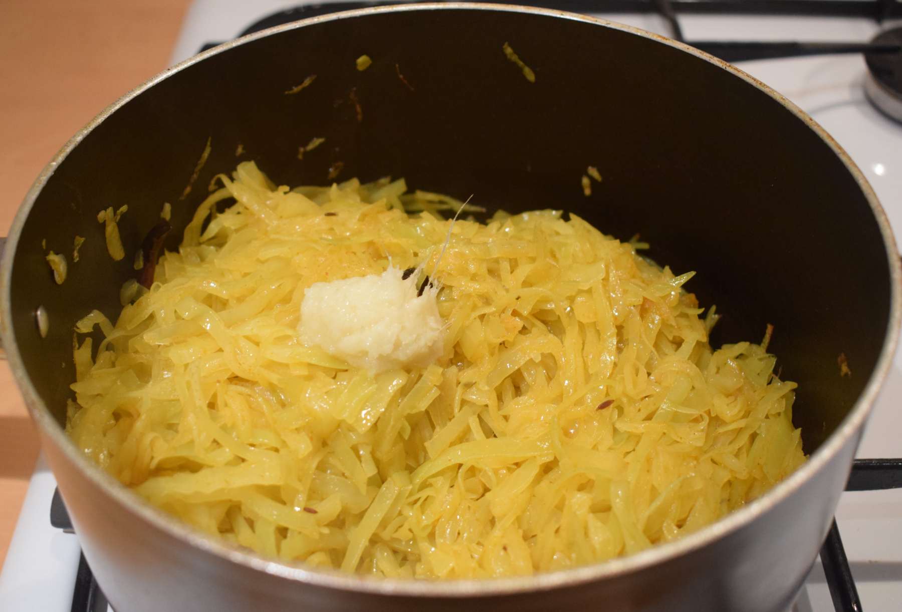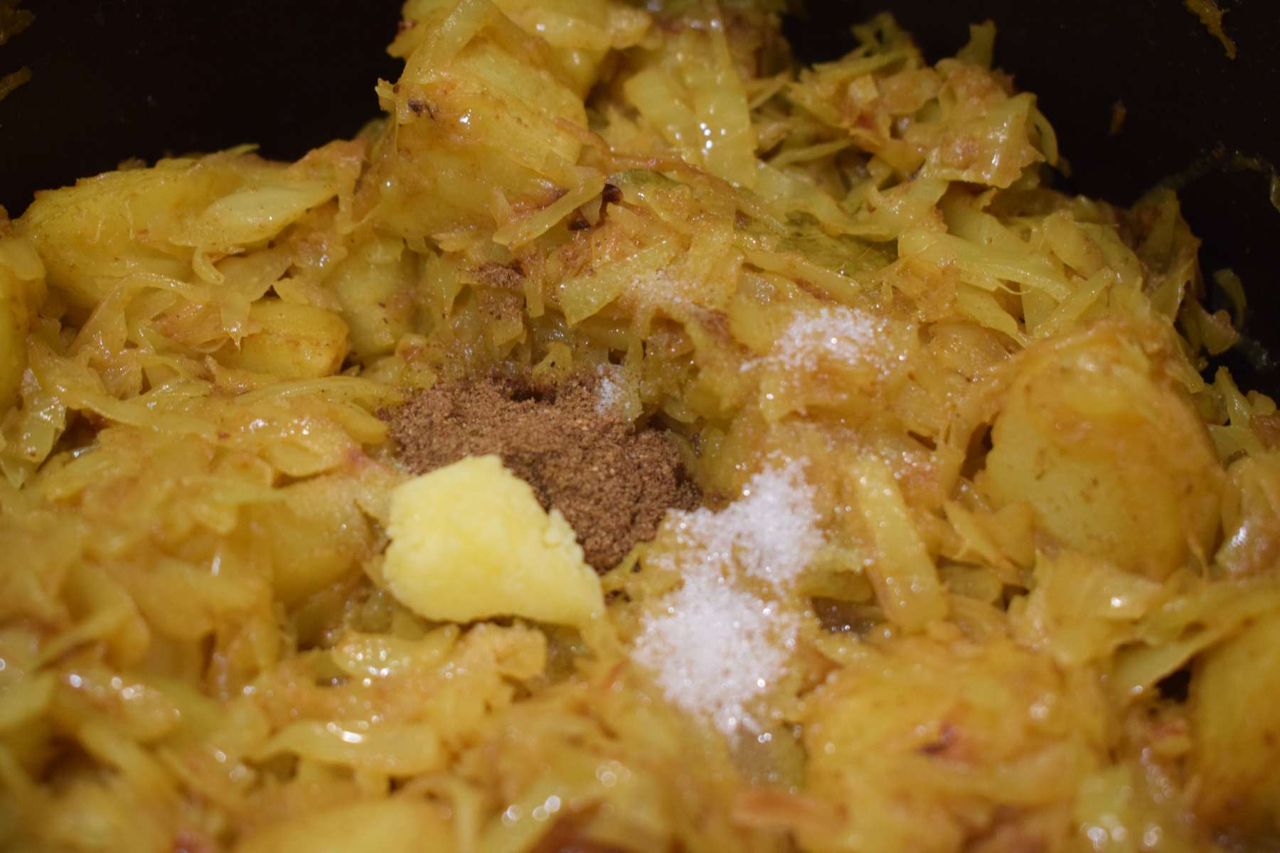 - Cover the pan and cook it in low flame for another 5-6 minutes until the cabbage becomes tender.