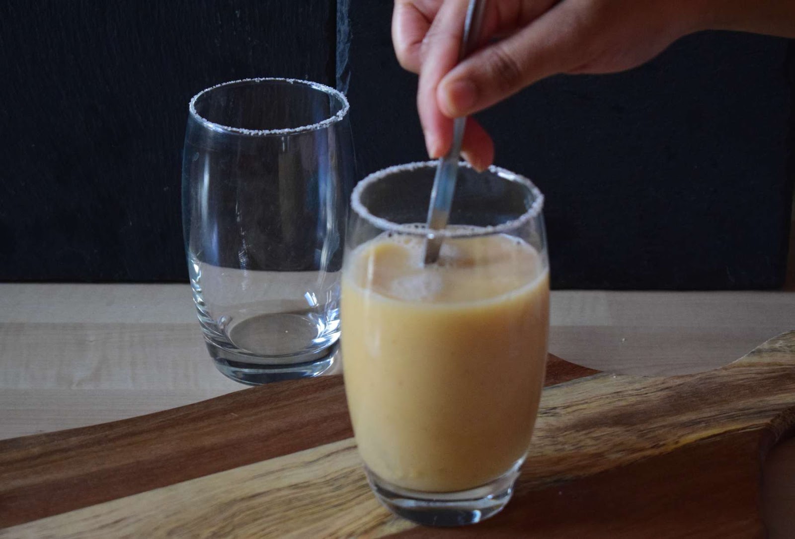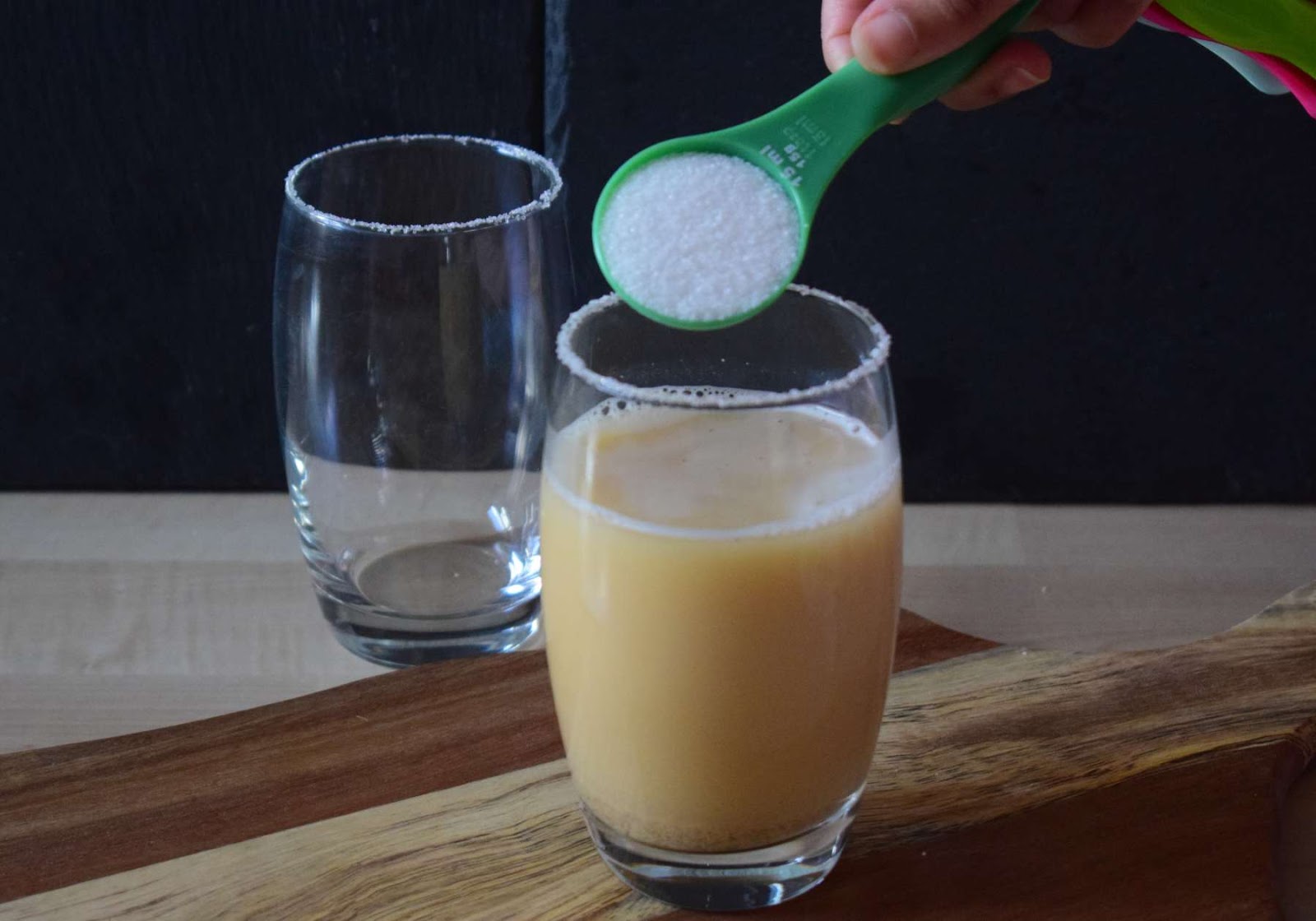 - Add Sugar, rock Salt and ground black Pepper one by one into the glass and mix it until the Sugar gets completely dissolved.