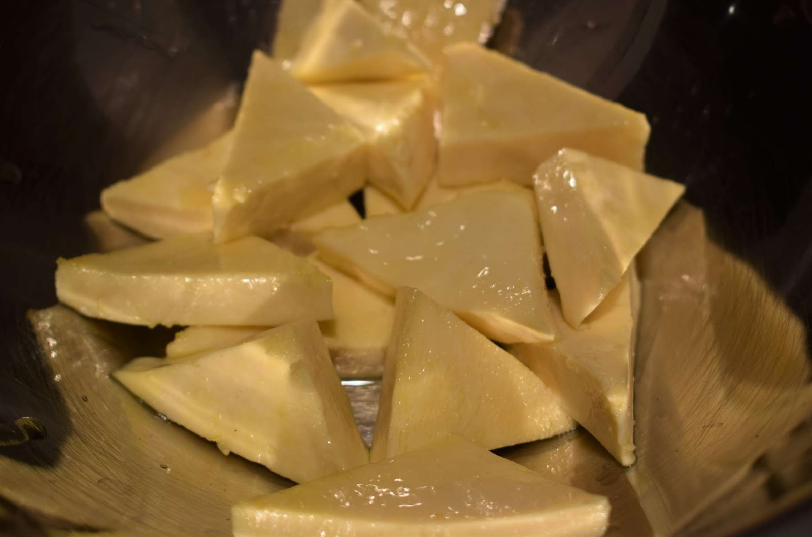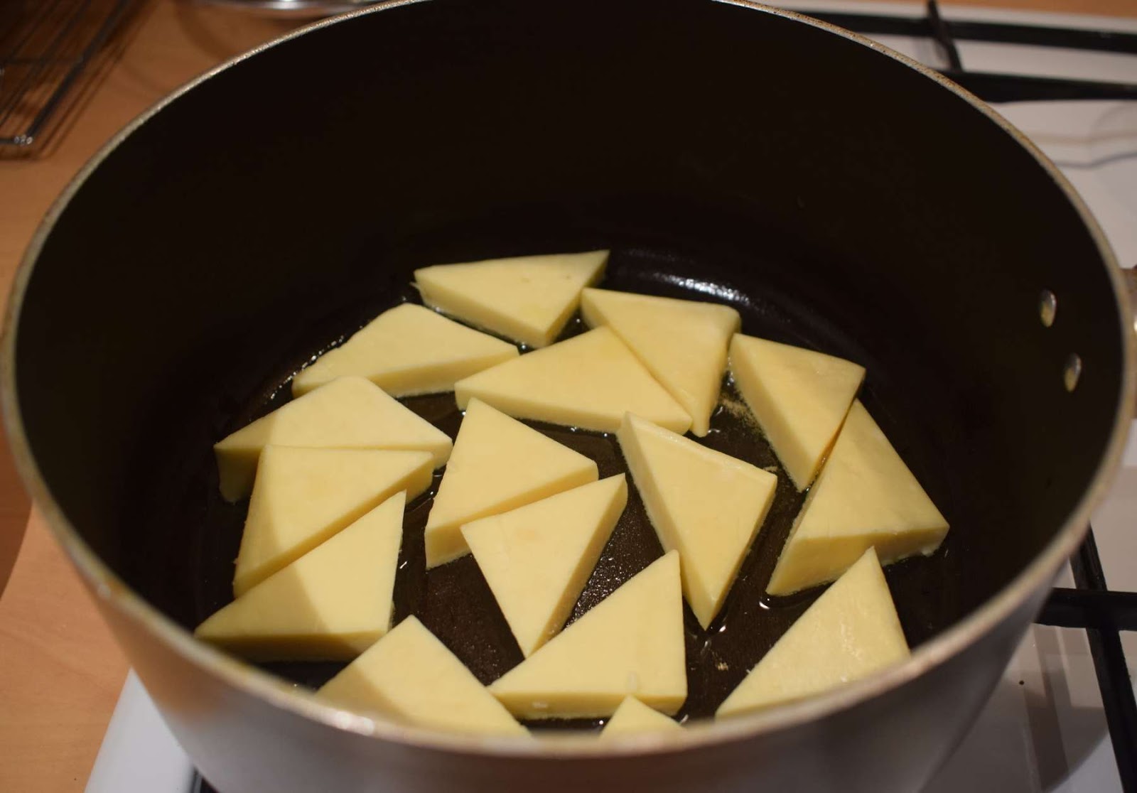 Recipe for Shahi paneer is a slightly sweet white gravy. First, I have cut the paneer in triangular pieces. Then I have slightly fried them for some time and soaked it in warm water for some time.