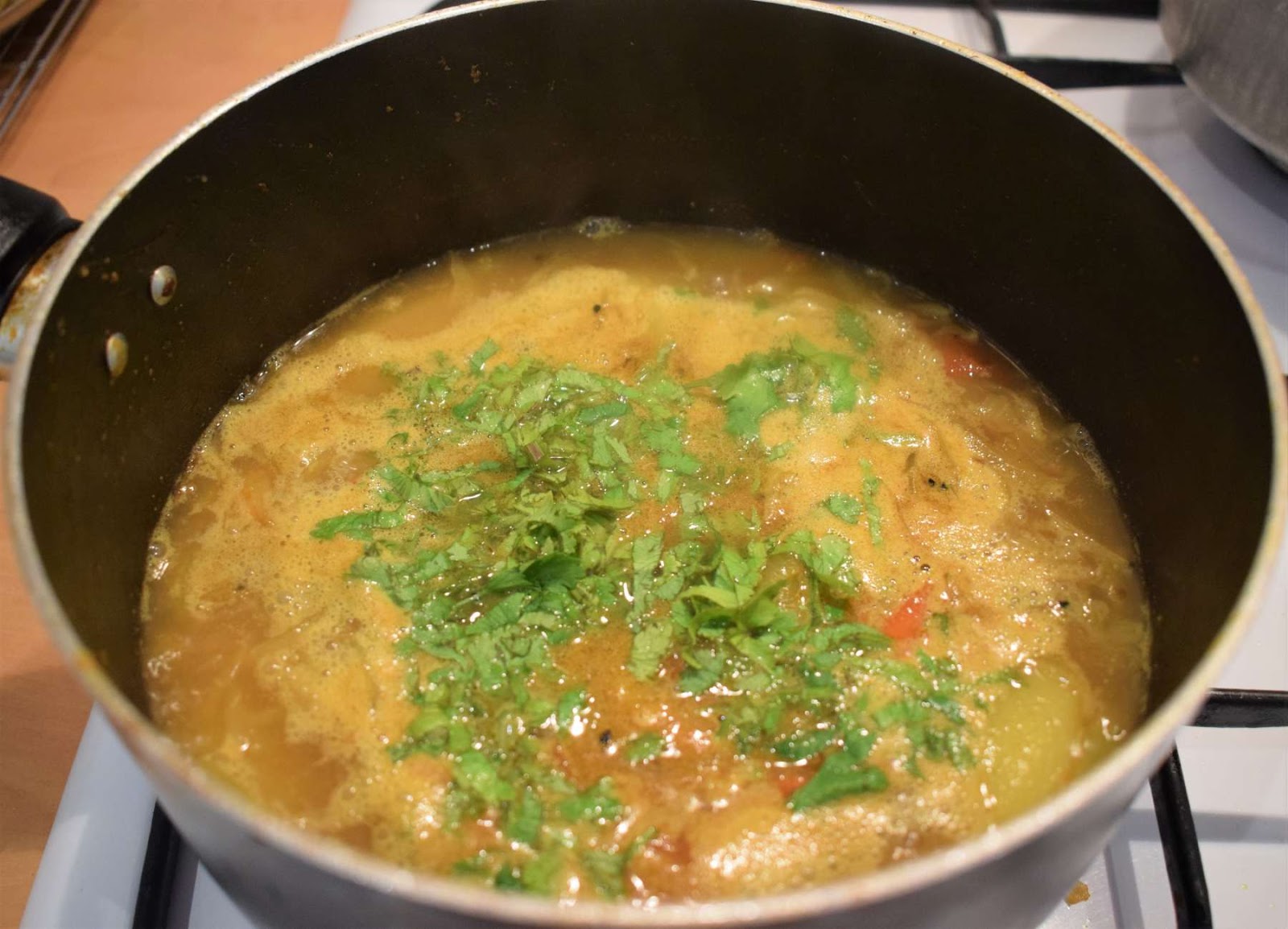 I have used Cumin powder, Coriander powder and fresh Cilantro herbs for flavouring. For Bengali Macher Jhol, its compulsory to use Dhone-Jeere (Coriander-Cumin).