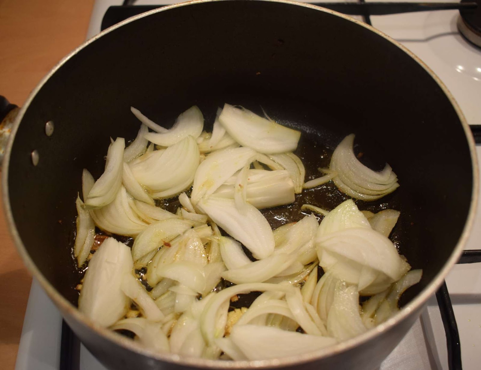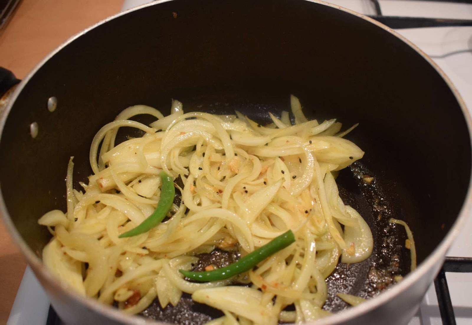 - Cook them for 2-3 minutes in medium flame until the Onions become translucent.