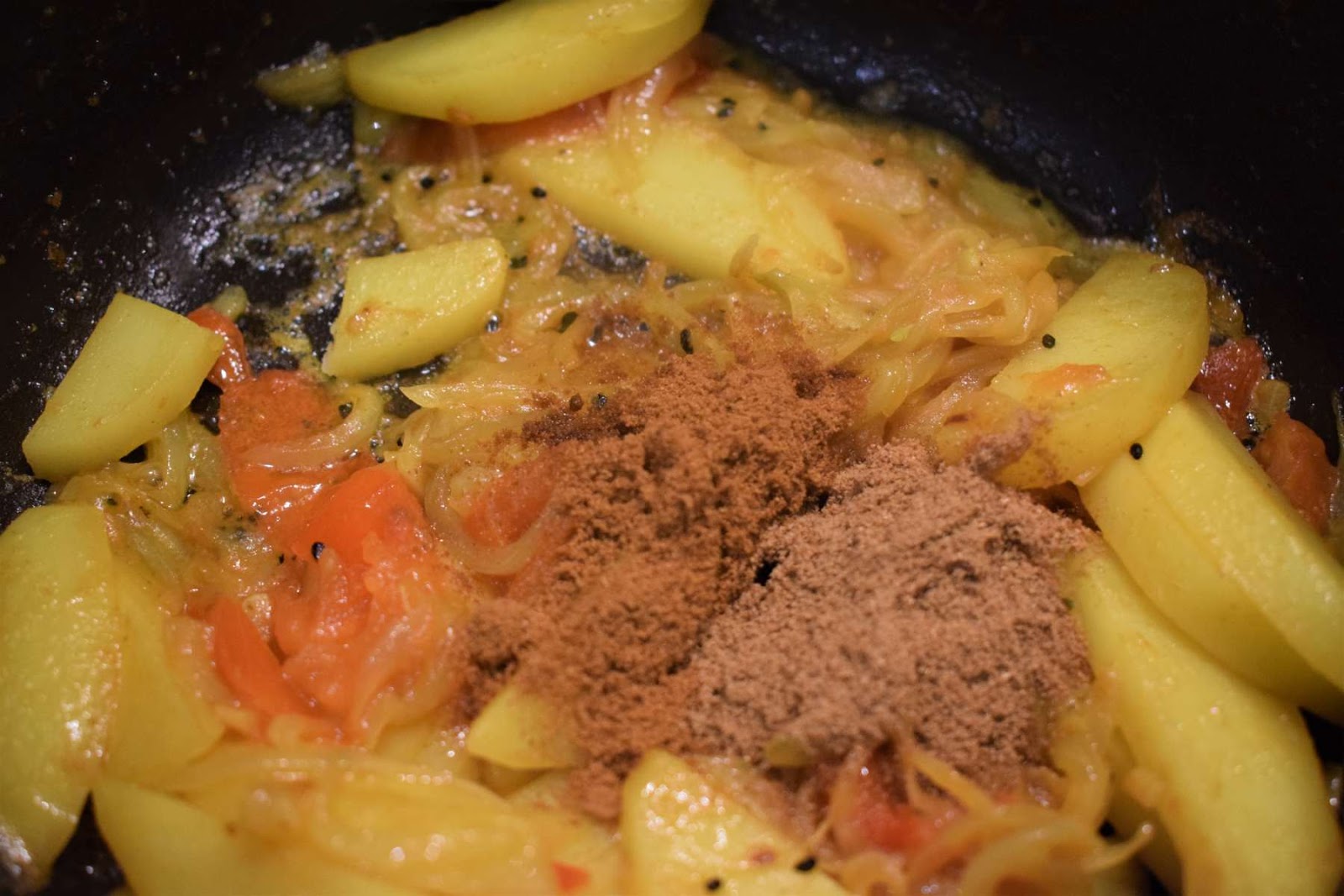 - Add Cumin powder, Coriander powder and give a nice mix.