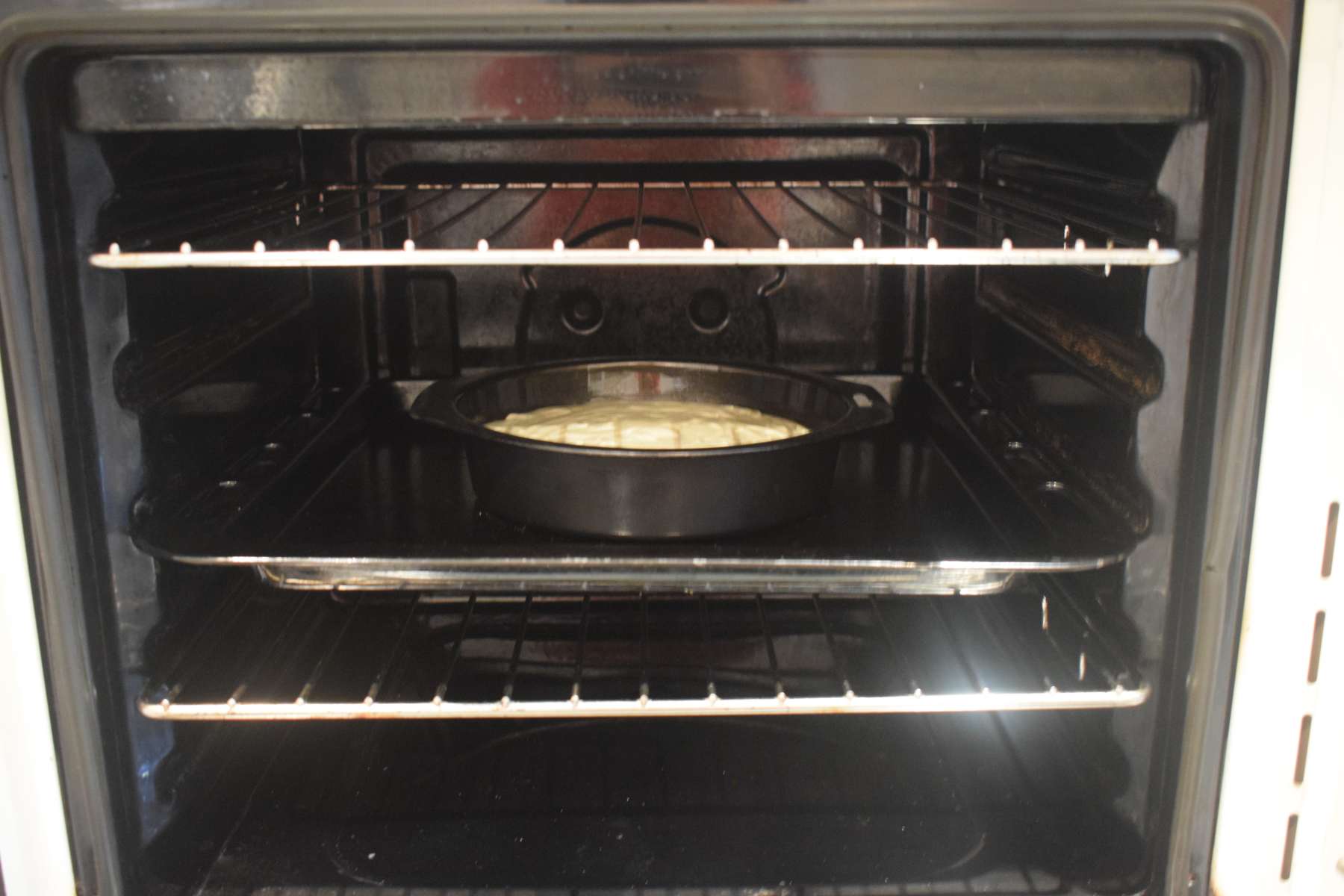 - Put the cake tin into the middle of the preheated oven for 35-40 minutes. For me it took exactly 36 minutes to get baked.