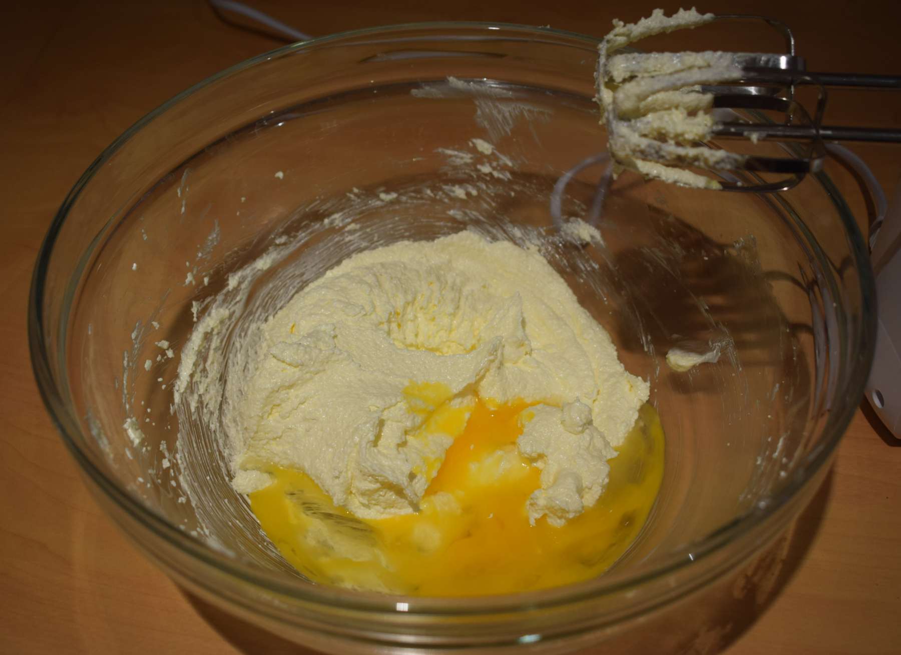 - Add two eggs, one at a time into the bowl and mix it in medium speed for another 45-50 seconds until the mixture is airy.
