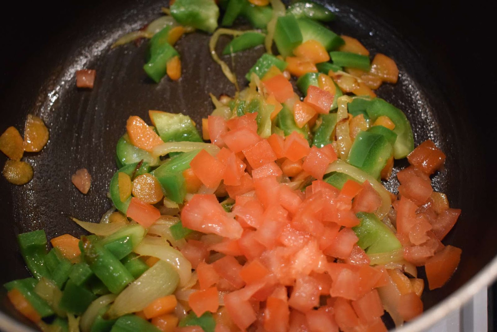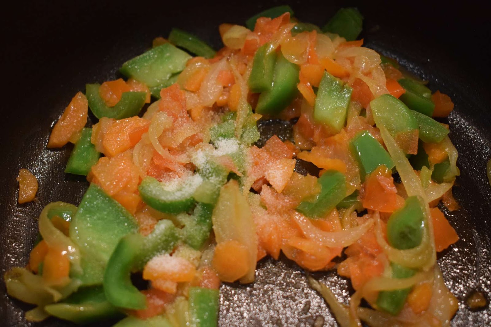 In this recipe, I have fried the Onions first. Then I have added rest of the vegetables one by one at a time. For flavouring, I have used Cilantros with Cumin powder, Coriander powder and smoked Paprika powder.