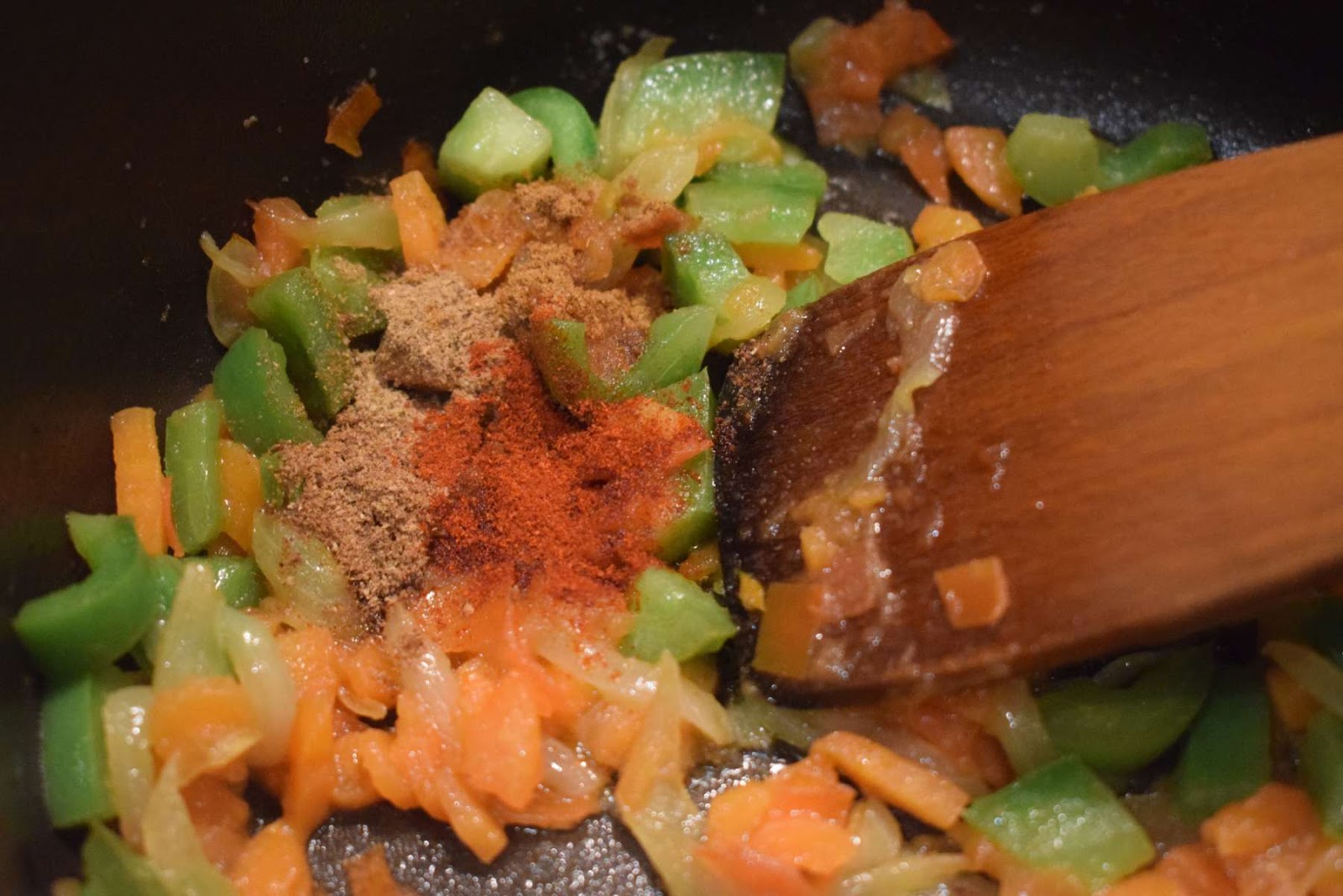 - Add Cumin powder, Coriander powder, smoked Paprika powder and give a nice mix.