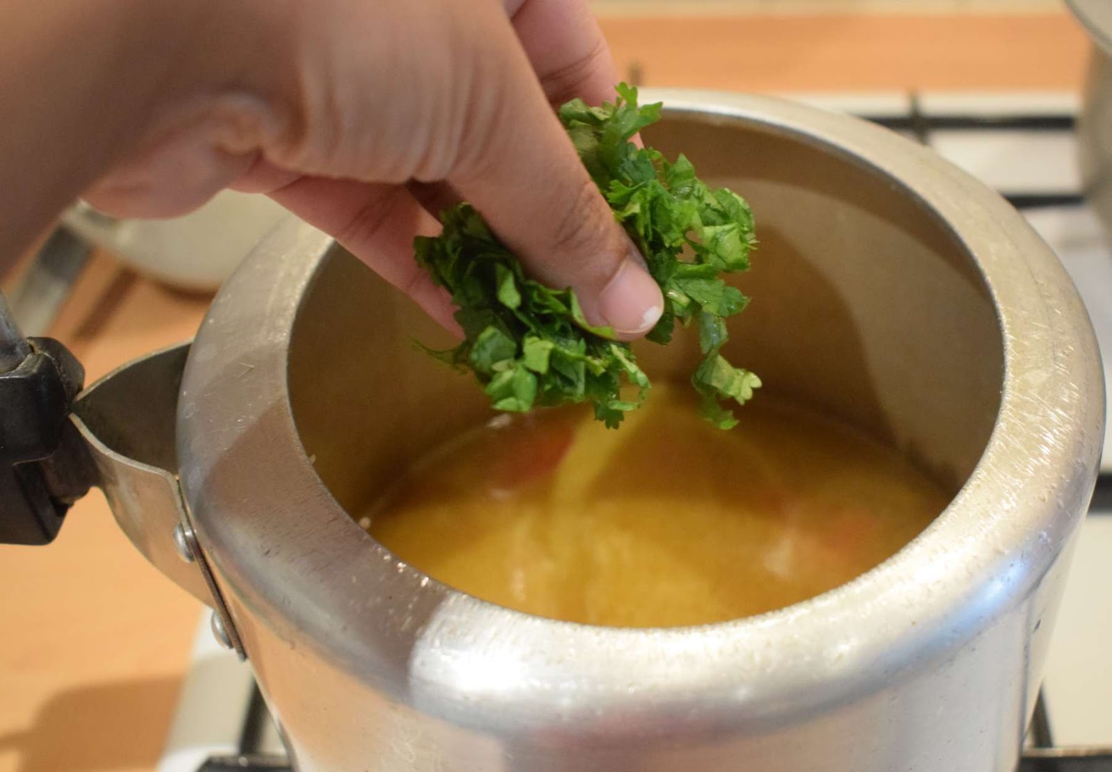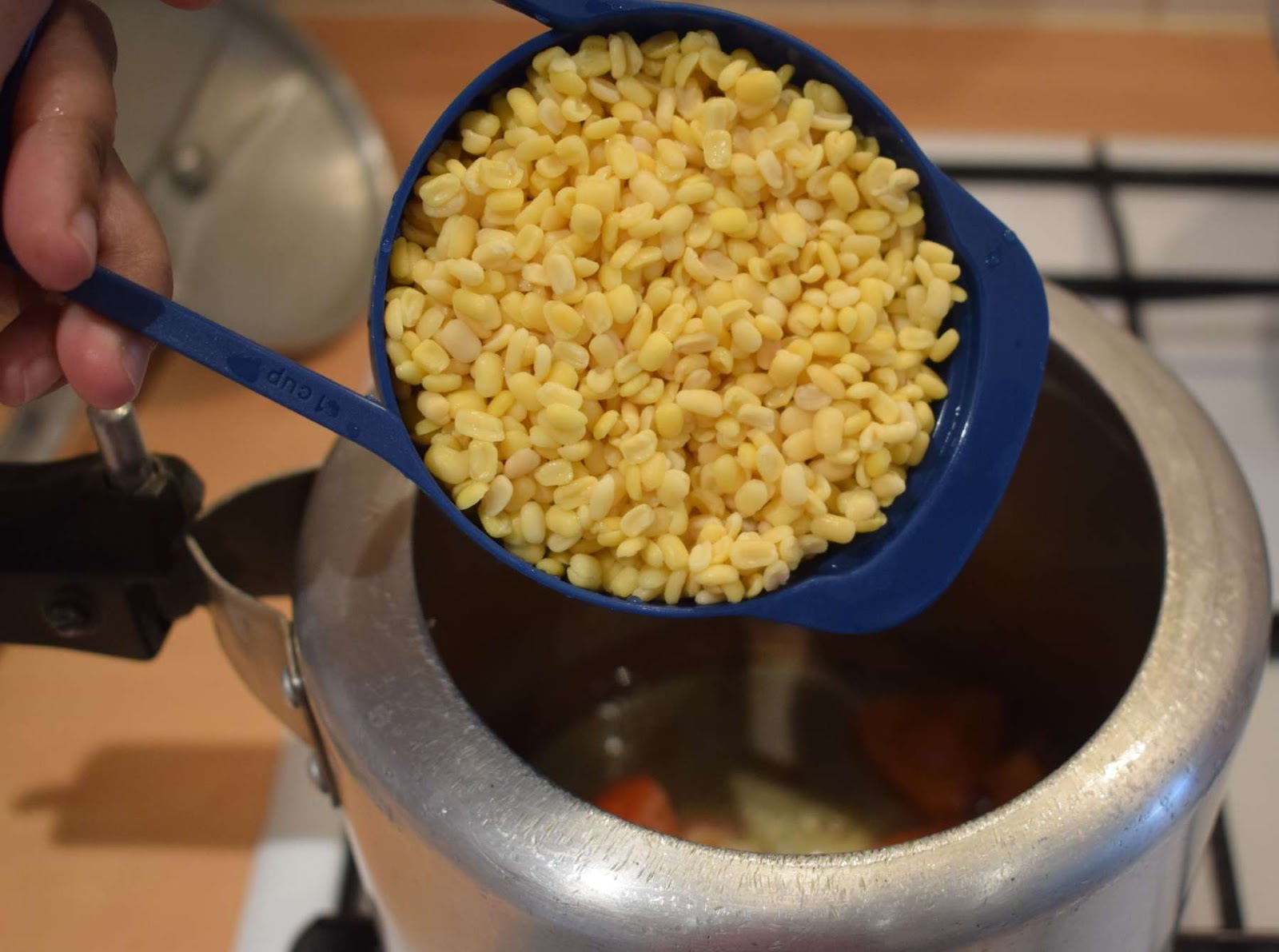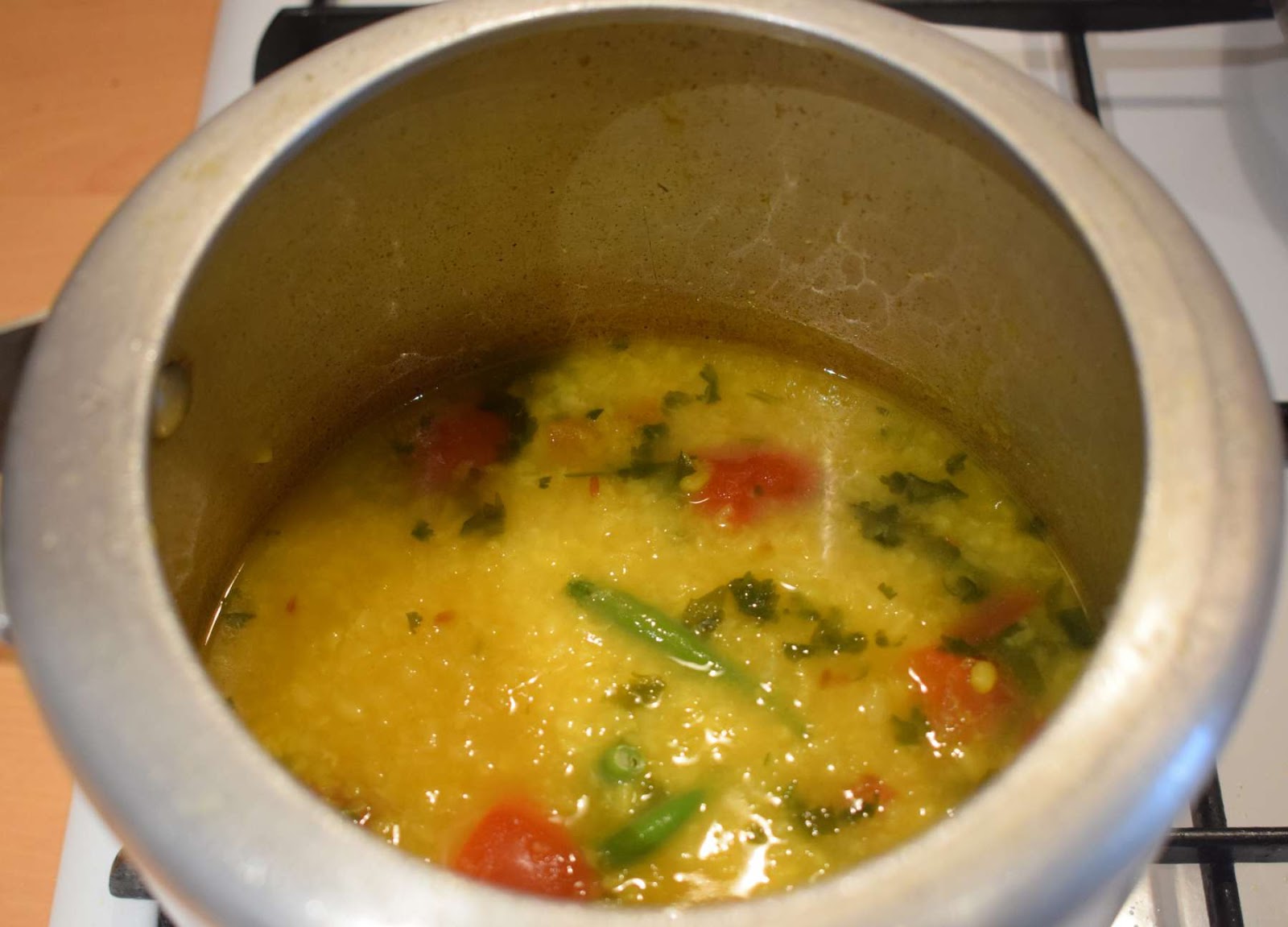 - Add some water if the Dal is too thick and let it cook until the Dal simmers.