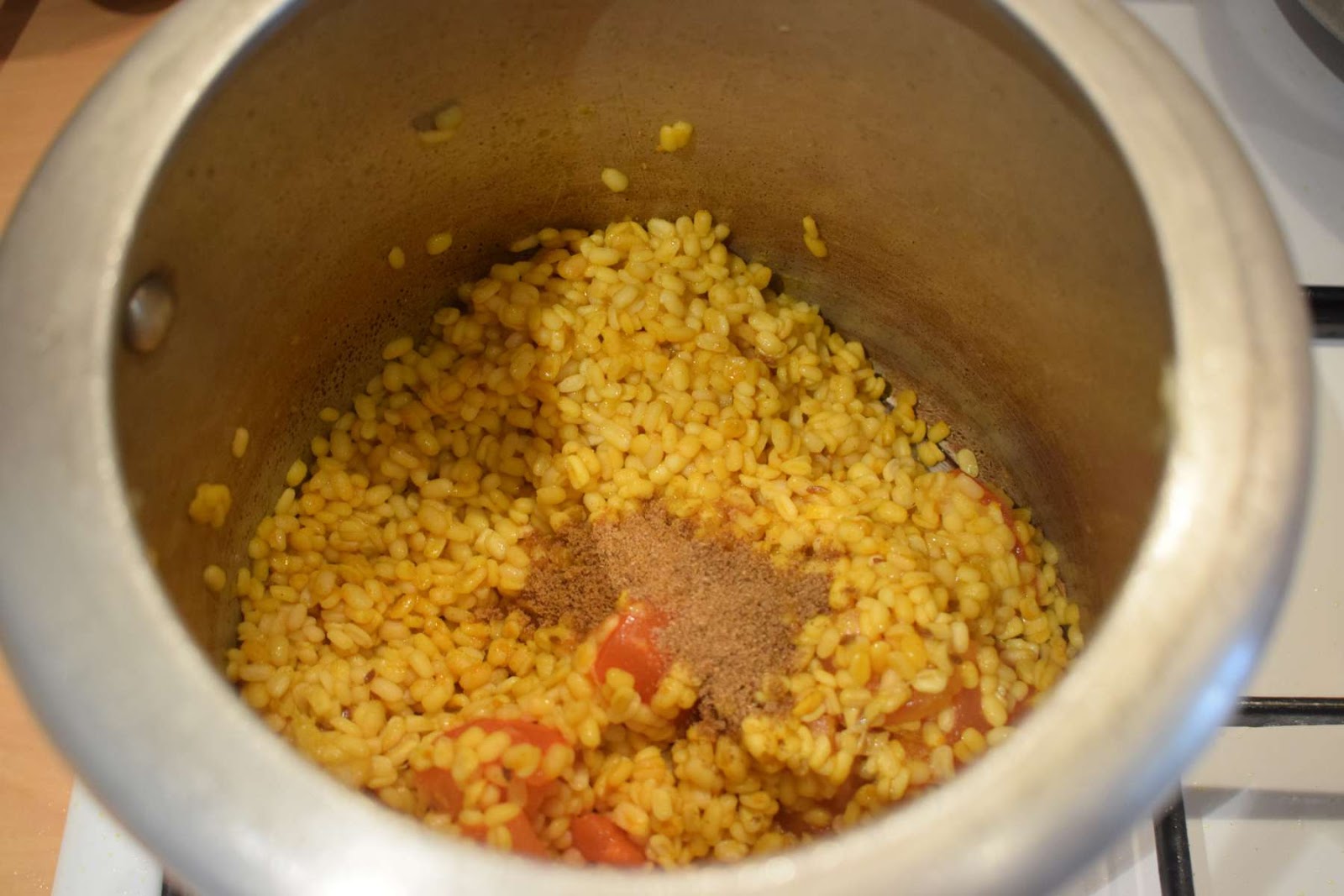 - Add Cumin powder, Coriander powder and mix it thoroughly.